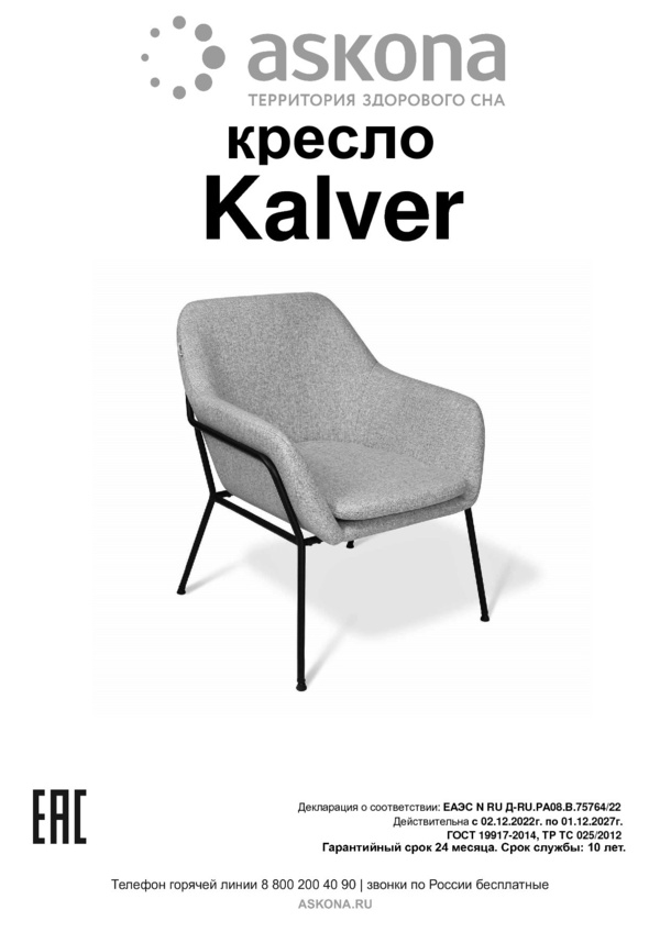 Кресло Kalver тvel52 (тк. velutto 52)