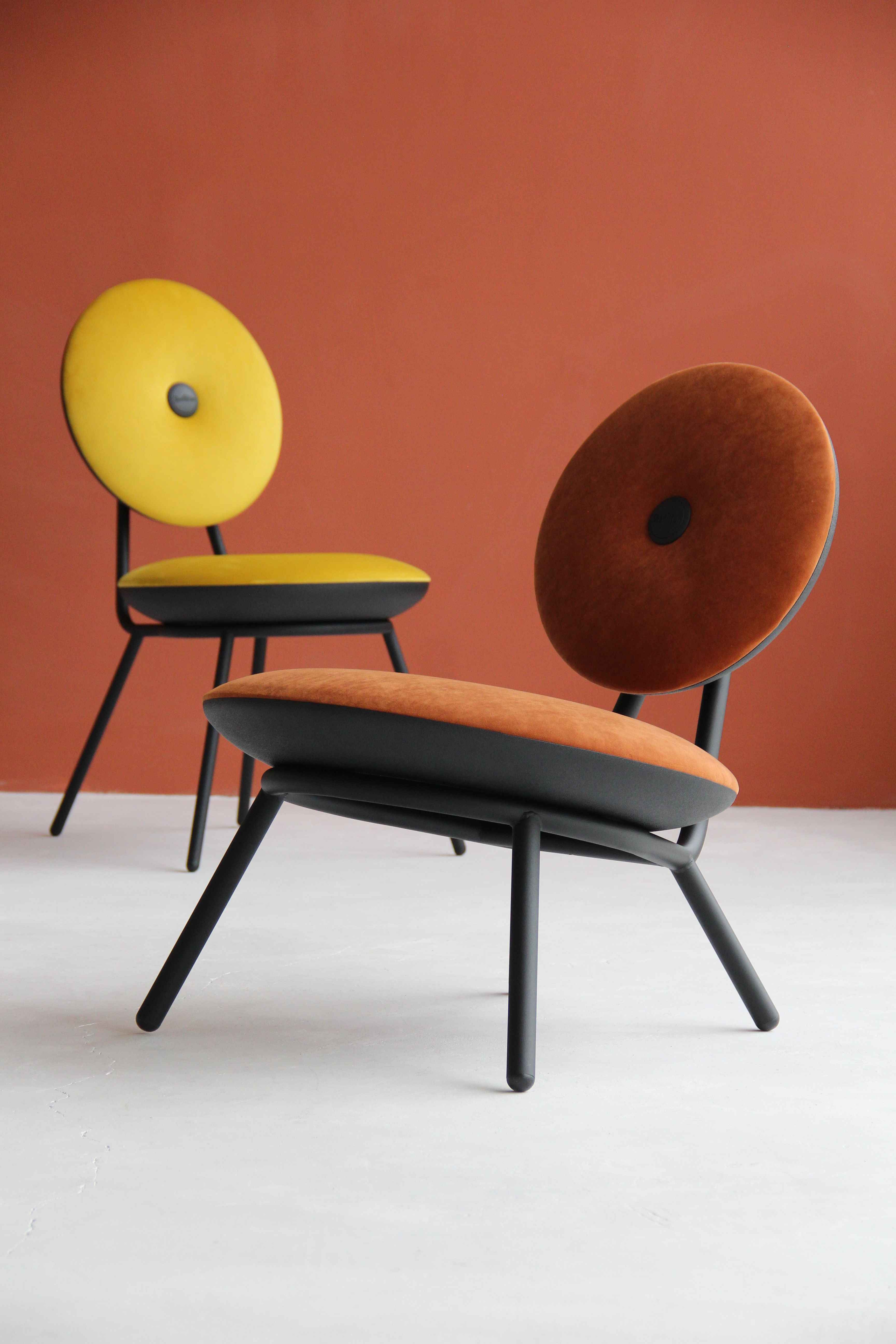 Мягкие объемные элементы на металлическом каркасе создают ощущение легкости и современности. Яркое цветовое исполнение делает модель выразительной, а минималистичная форма позволяет легко вписать кресло в офисы, кафе, коворкинги, арт-пространства, лаунж-зоны и современные домашние интерьеры.