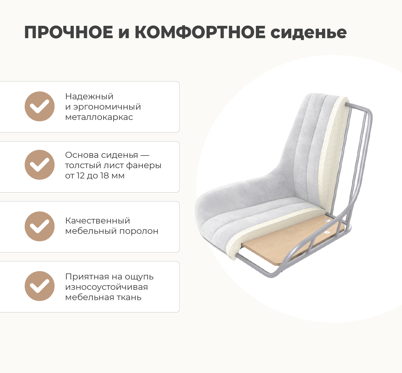 Мягкое сидение, отведенная назад спинка с подлокотниками, отвечают за вашу уютную и эргономичную посадку.