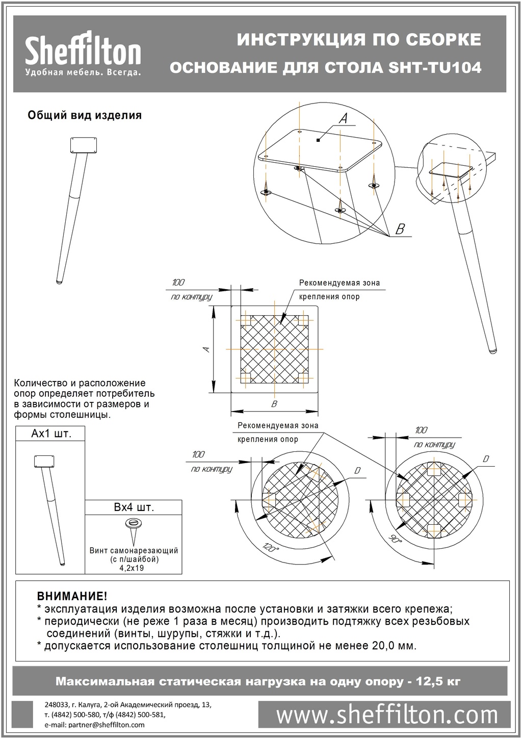 Рекомендуем использовать для круглых столешниц от 3-х оснований, для квадратных, овальных и прямоугольных - от 4-х.