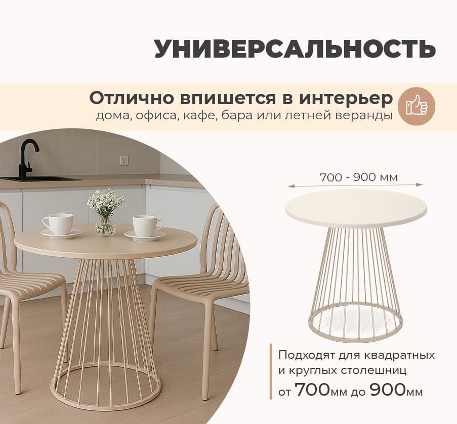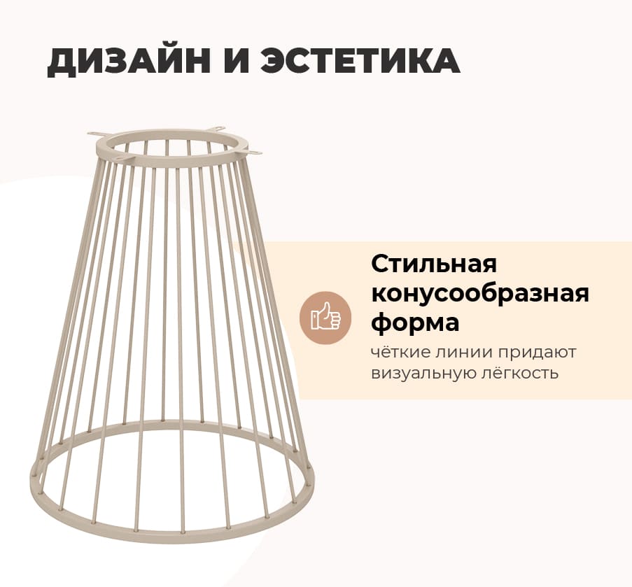 Металлическое подстолье SHT-TU85 привлекает внимание своей выразительной конусообразной формой — решение, которое сразу выделяет его на фоне обычных моделей. Сужающаяся к верху конструкция придаёт подстолью динамику и визуальную лёгкость, создавая ощущение архитектурной завершённости. Благодаря лаконичным линиям и геометрической гармонии, модель прекрасно вписывается в любой интерьер, от строго минимализма до стильного лофта.