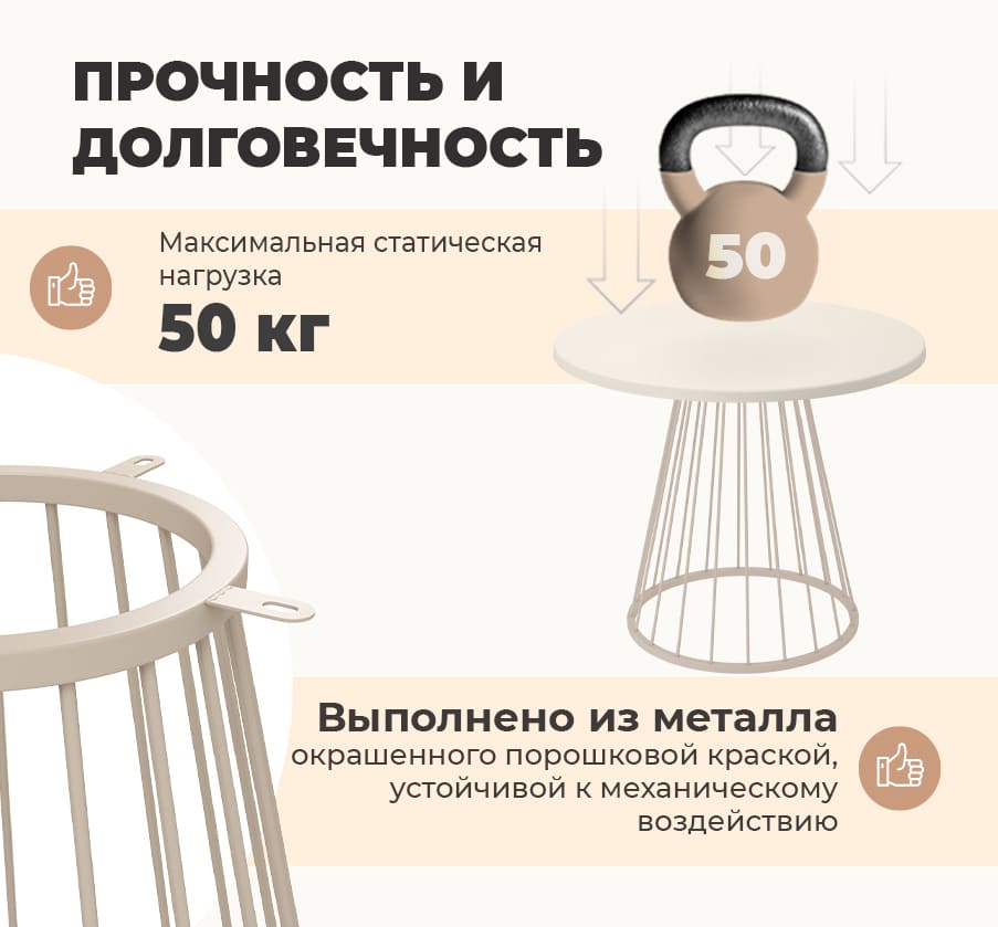 НАДЁЖНОЕ МЕТАЛЛИЧЕСКОЕ ПОДСТОЛЬЕ окрашено порошковой краской, устойчивой к механическим повреждениям и износу. Основание выполнено из трубы 20х20 мм и прутков 10 мм.