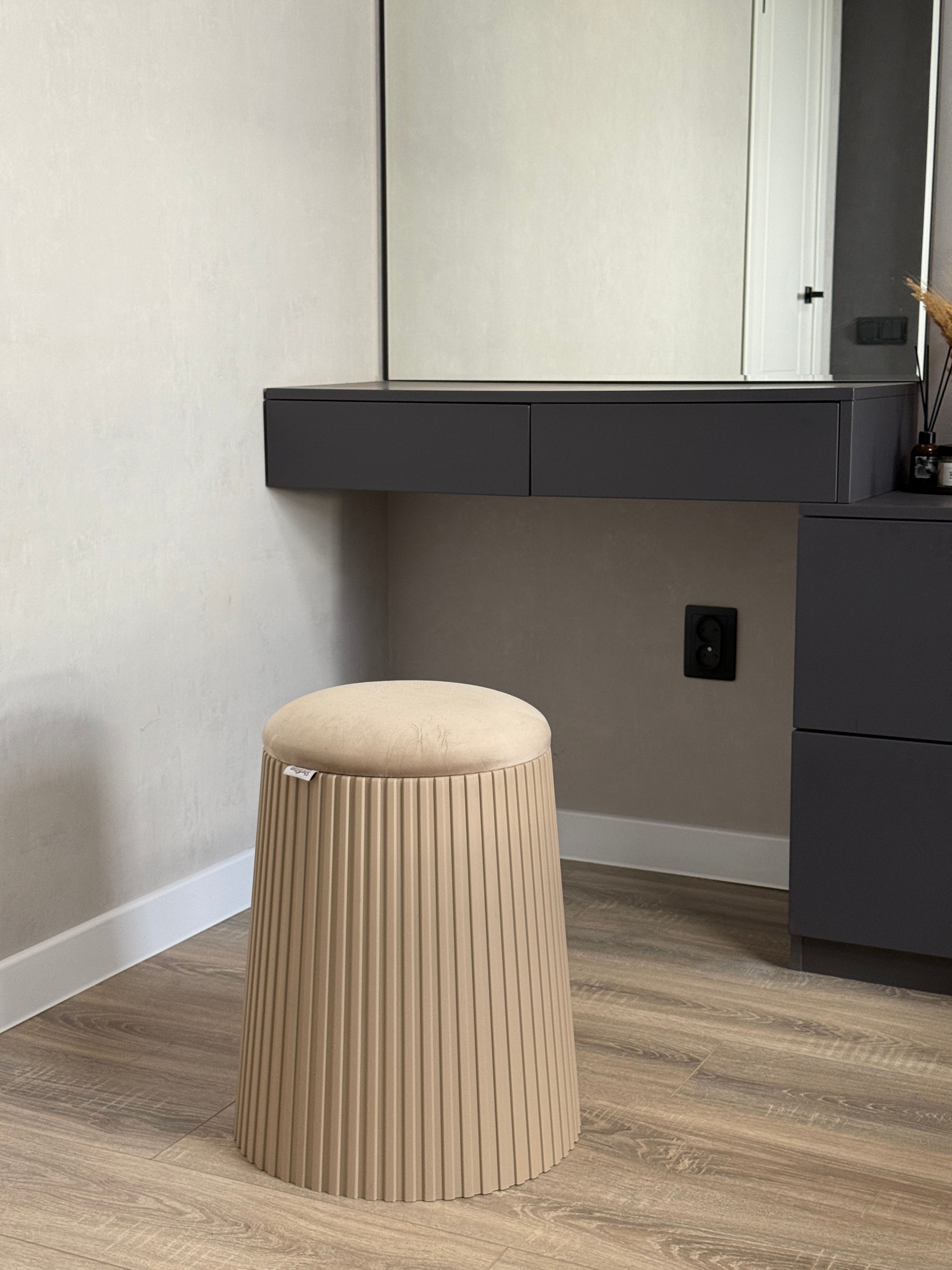 Компактный и лёгкий, пуфик легко перемещать из комнаты в комнату, меняя обстановку без усилий. Его можно использовать как дополнительное сиденье, подставку для ног или даже как небольшой столик — всё зависит от ваших задач и фантазии. Удобная мягкая верхняя часть обеспечивает комфорт при использовании, а прочное основание придаёт стабильность. Высота пуфа оптимальна для посадки или опоры ног.
