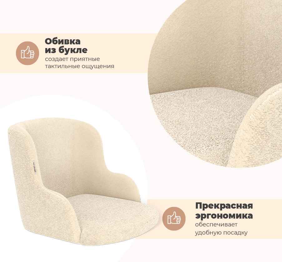 ОБИВКА выполнена из букле, в качестве мягкого наполнителя используется поролон.
