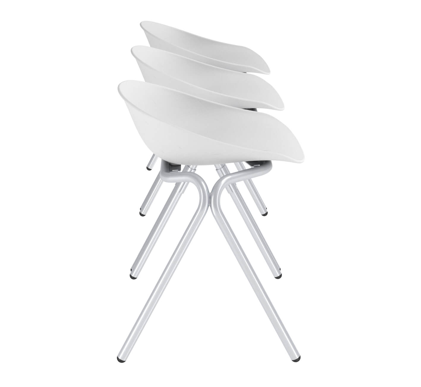 Сидение выполнено из полипропилена с армирующими добавками и выдерживает продолжительные нагрузки. Надежный металлический каркас покрыт порошковой краской, устойчивой к механическому воздействию. Максимальная статическая нагрузка на стул 150 кг.