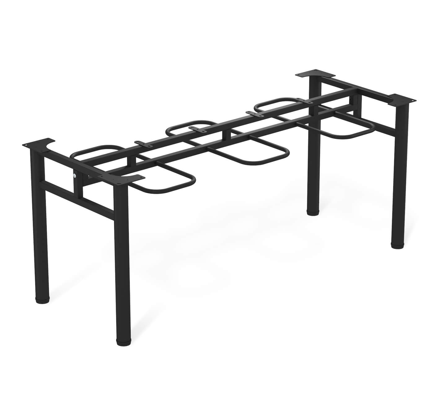 Металлическое основание окрашено порошковой краской, устойчивой к механическим воздействиям и ежедневным нагрузкам. Основание выполнено из трубы диаметром 51 мм, подвесы — из трубы диаметром 16 мм. Продуманная конструкция обеспечивает надежность, устойчивость и длительный срок службы даже при интенсивном использовании в общественных пространствах.