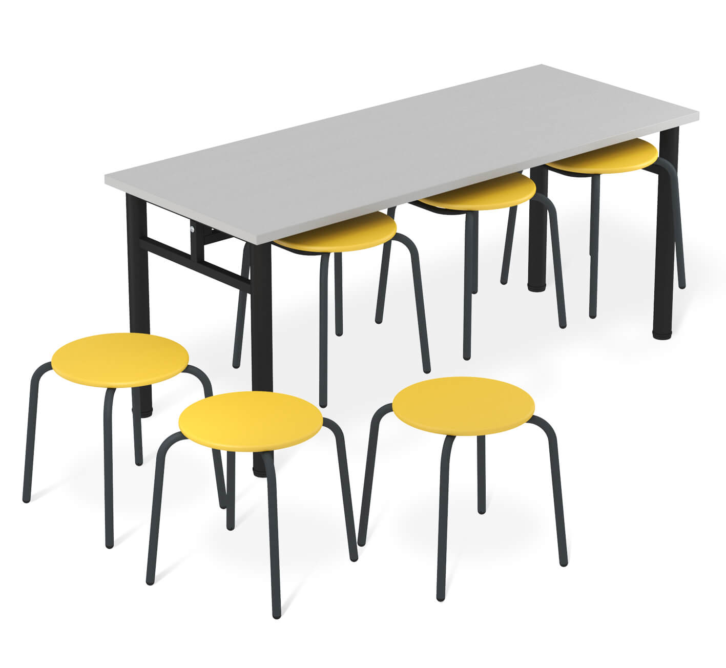 Это особенно удобно для школьных столовых и других образовательных пространств, где важно соблюдать порядок, быстро подготавливать помещение к следующему потоку посетителей и делать ежедневную эксплуатацию мебели максимально удобной. Подвесы помогают более рационально организовать пространство под столом и делают использование стола более практичным.