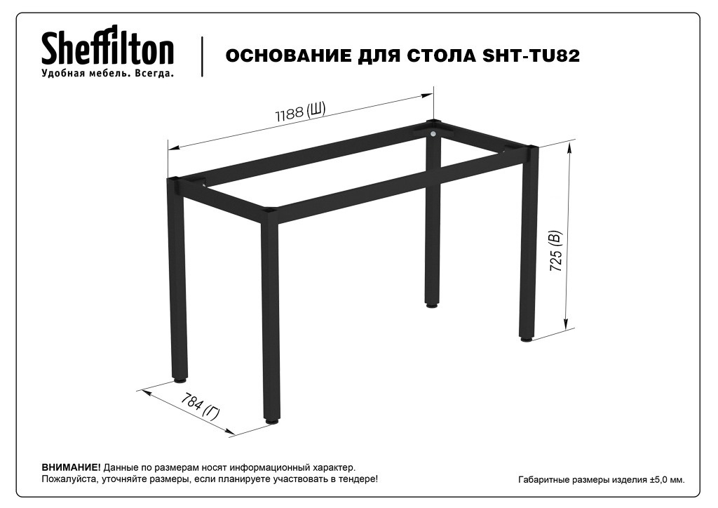 Характеристики индивидуальной упаковки Основание для стола SHT-TU82 118/78 В725мм
