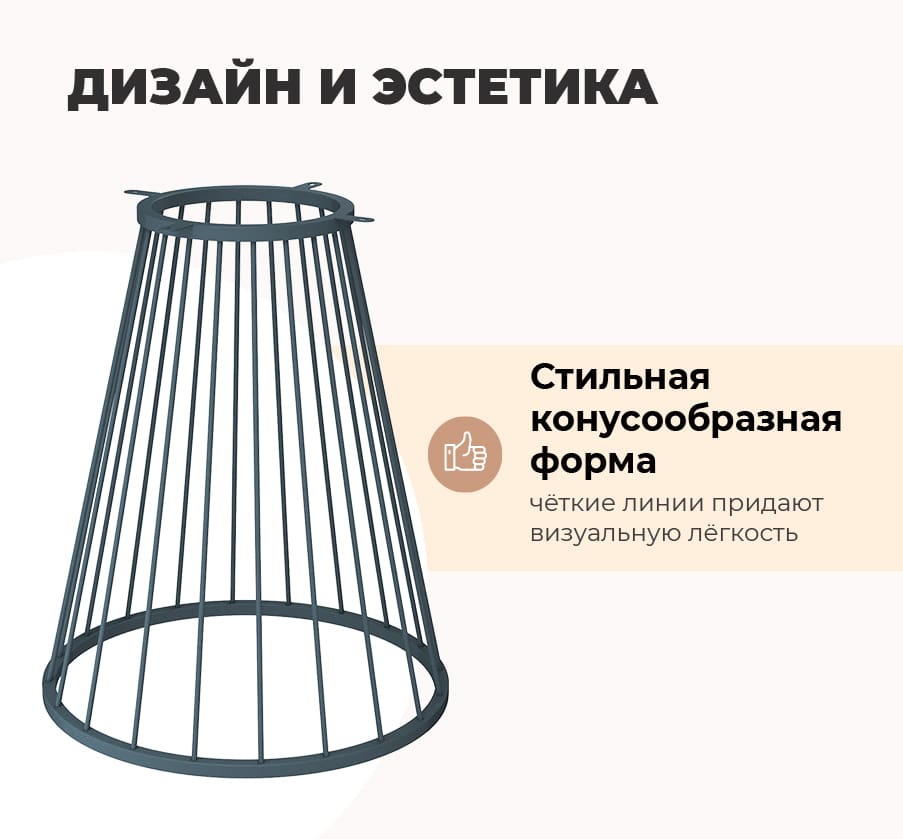Металлическое круглое подстолье отличается современным и оригинальным дизайном. Элегантная конусообразная форма и чёткие линии придают ему визуальную лёгкость, благодаря чему подстолье гармонично дополнит любой интерьер, от строгого минимализма до стильного лофта.