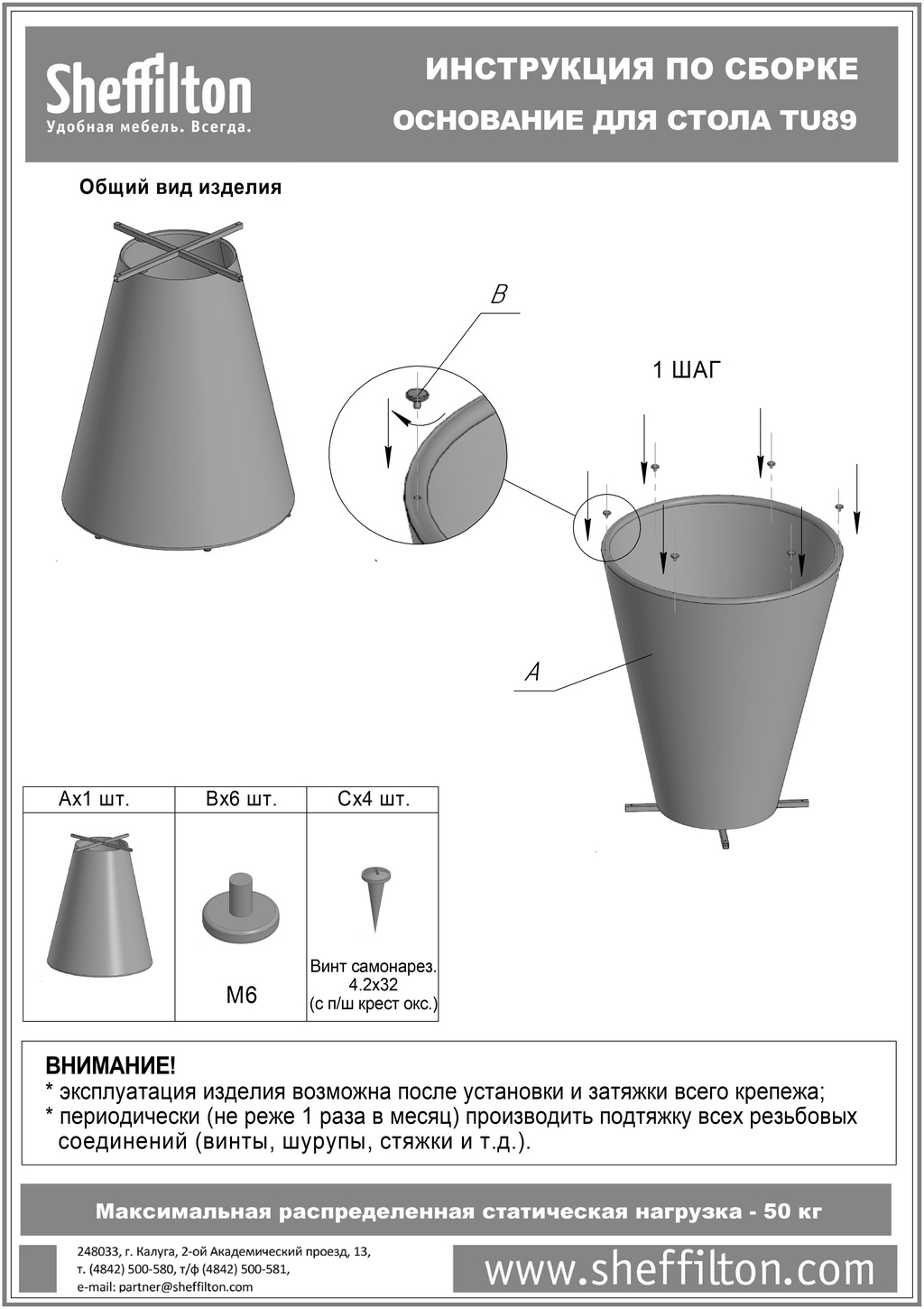 Основание выполнено из листа 0,8 мм, что обеспечивает устойчивость подстолья со столешницами.