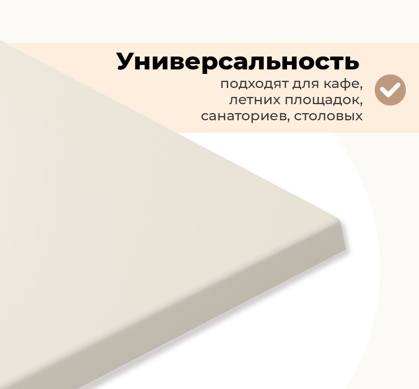 Столешница из Верзалита SHT-TT46 — это не просто элемент мебели, а отличное решение для тех, кто ценит гармонию в интерьере. Готовый стол с такой столешницей будет гармонично и со вкусом смотреться не только в помещении, но и на улице. Благодаря своим уникальным свойствам столешница станет идеальным решением для ресторанных помещений, кафе и санаториев, где есть открытые летние площадки.