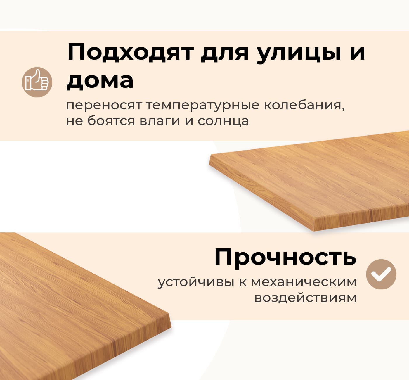 Столешница SHT-TT46 легко переносит температурные колебания от -50 до +90 градусов, что делает её превосходным вариантом как для интерьеров, так и для уличного использования.