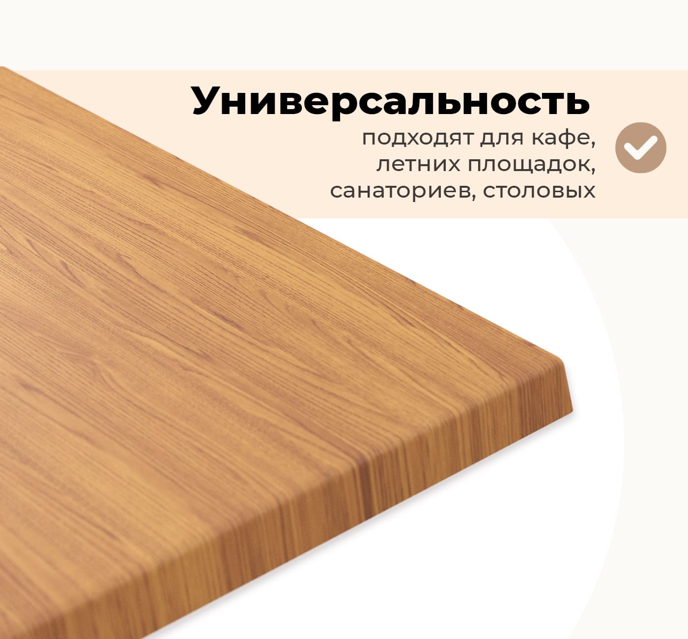 Столешница из Верзалита SHT-TT46 — это не просто элемент мебели, а отличное решение для тех, кто ценит гармонию в интерьере. Готовый стол с такой столешницей будет гармонично и со вкусом смотреться не только в помещении, но и на улице. Благодаря своим уникальным свойствам столешница станет идеальным решением для ресторанных помещений, кафе и санаториев, где есть открытые летние площадки.