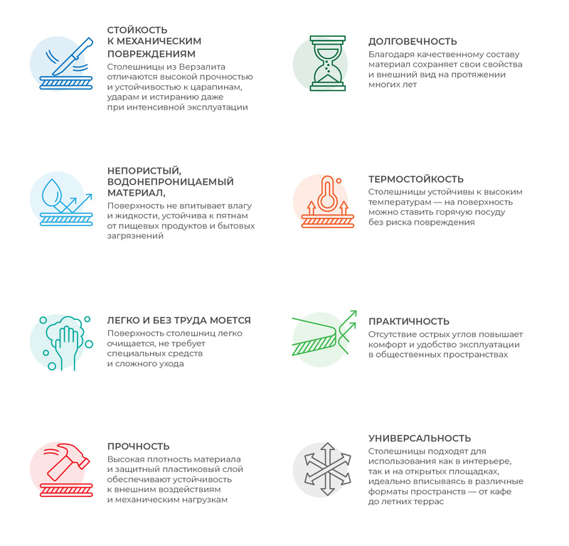 ПРЕИМУЩЕСТВА столешниц из ВЕРЗАЛИТА