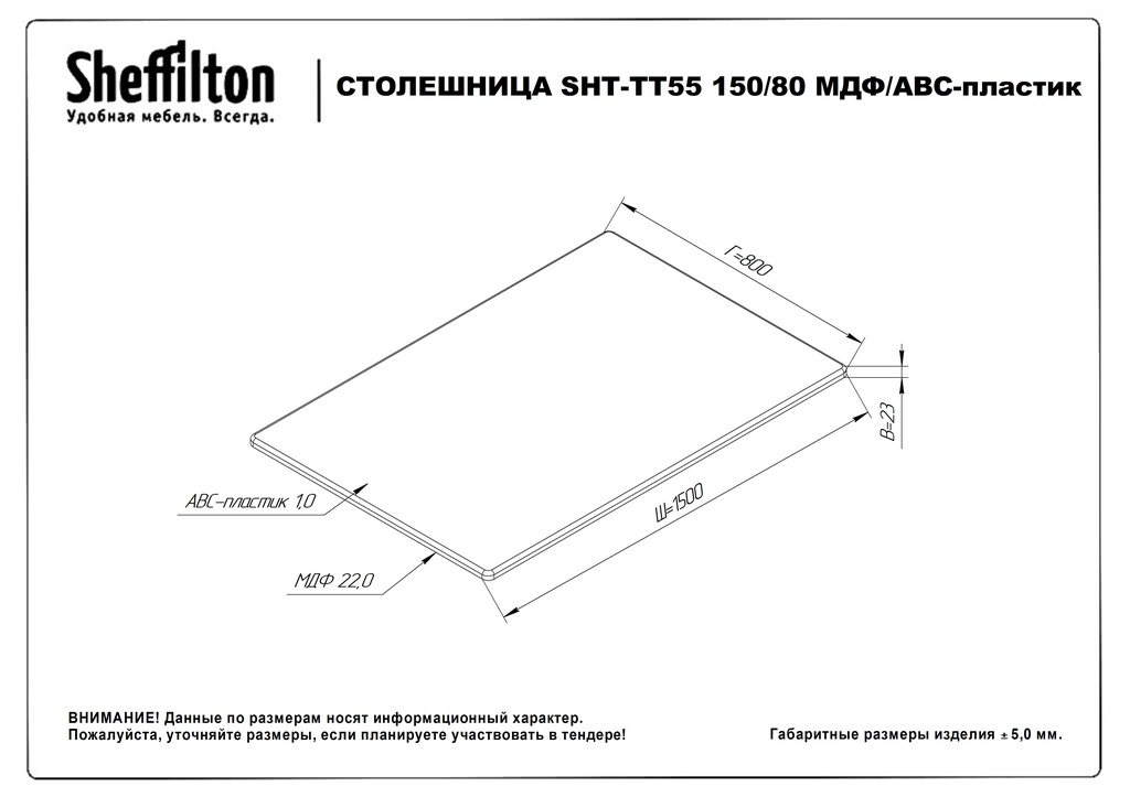 Столешница SHT-TT55 150/80 МДФ/ABS-пластик серый