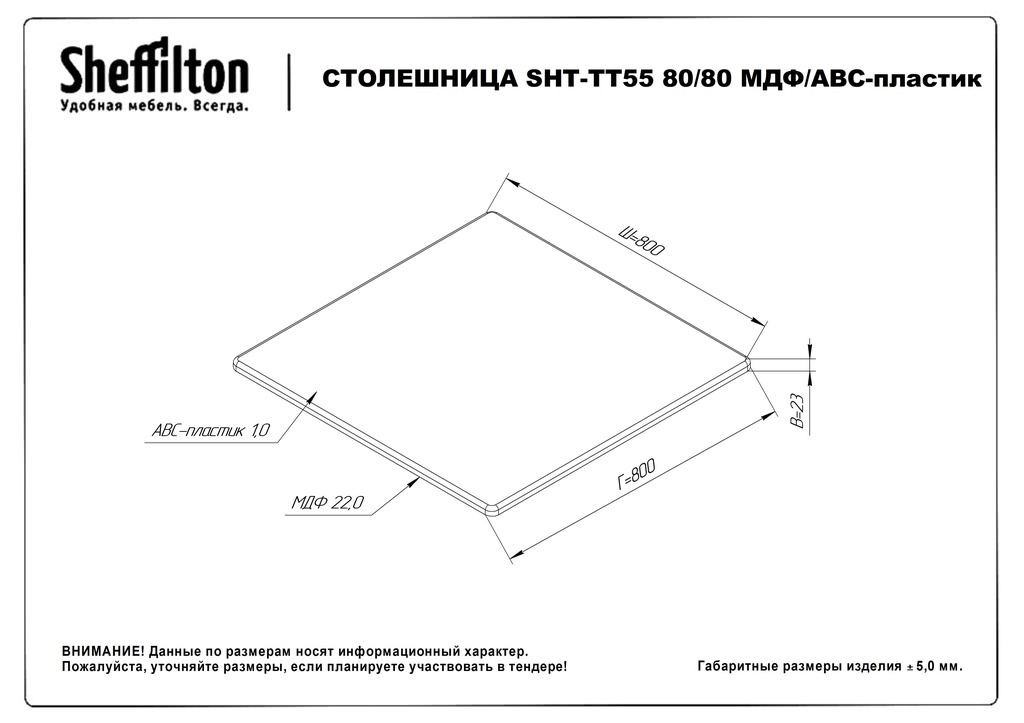 Столешница SHT-TT55 80/80 МДФ/ABS-пластик белый