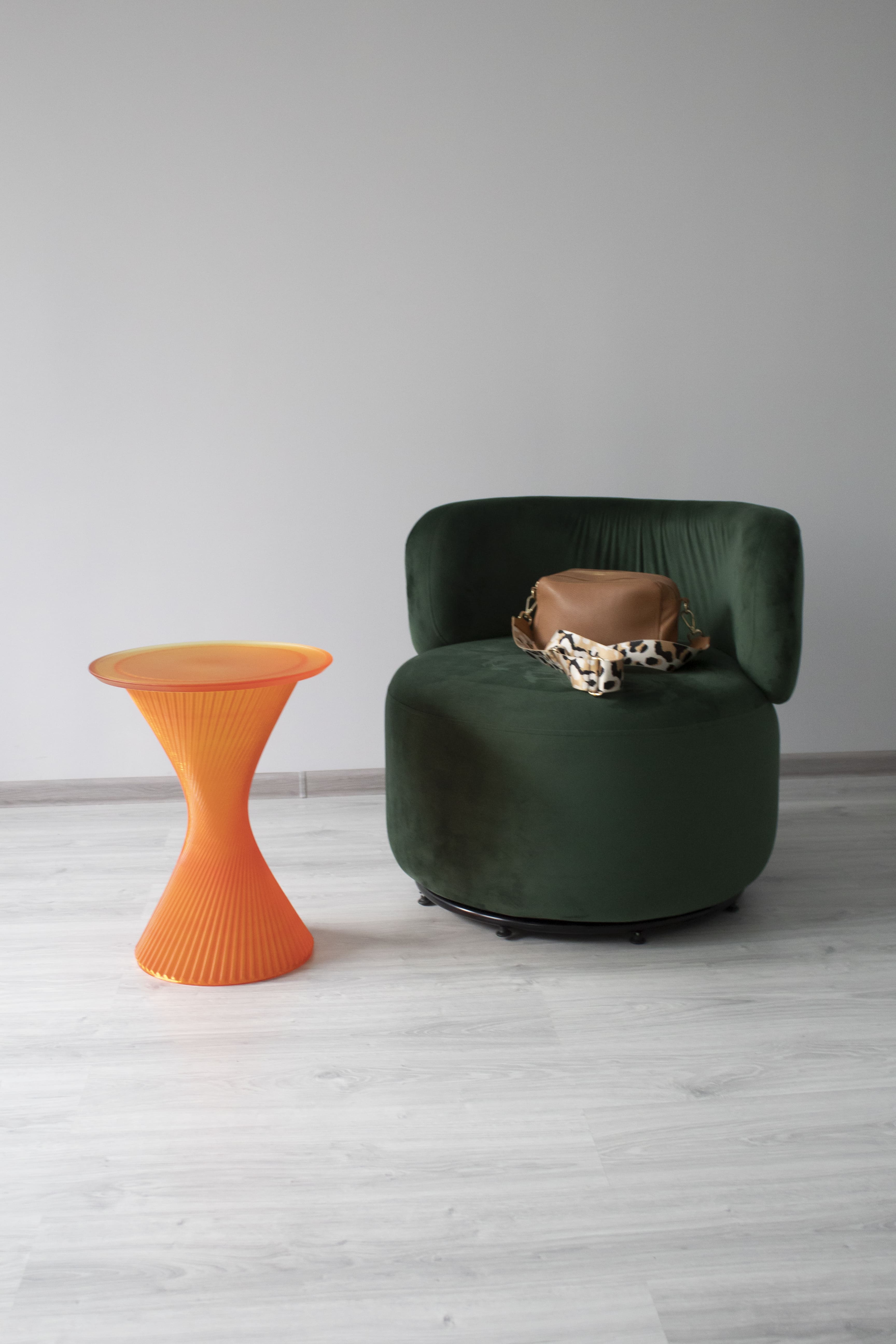 Благодаря использованию стекловидного материала, лучи проходящего света создают необыкновенную игру бликов, и делают столик визуально лёгким, не перегружая пространство.