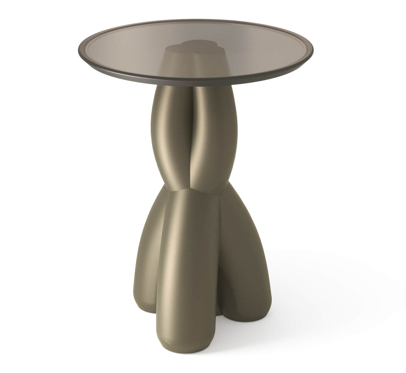 Специальная покраска создает иллюзию металла на солнце, а полупрозрачная столешница подчеркивает игру света и архитектурность форм.