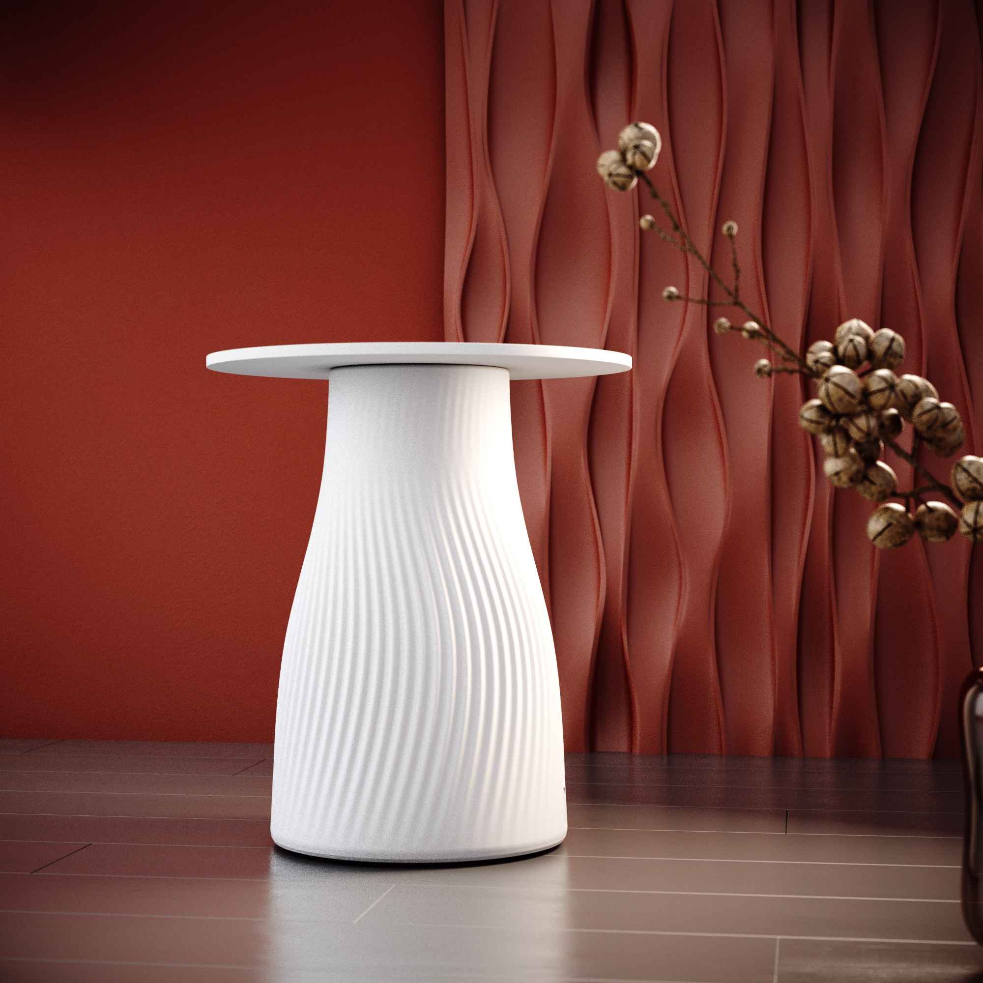 Идея журнального столика SHT БАО родилась из уникальной природы баобаба — дерева-легенды, символа устойчивости, долговечности и природной гармонии. Его характерная форма переосмыслена в современном дизайне: плавно расширяющееся основание напоминает массивный ствол баобаба, а вертикальные линии создают эффект природной текстуры, словно повторяя рельеф коры.