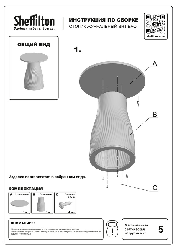 Максимальная нагрузка на столик - 5 кг.