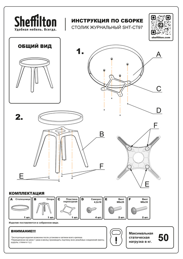 Максимальная нагрузка на столик - 50 кг.