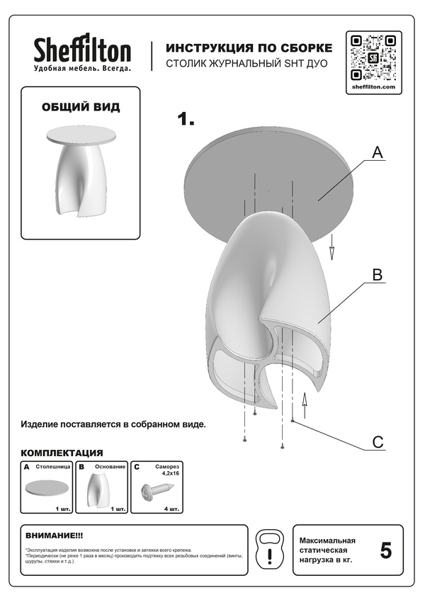 Максимальная нагрузка на столик - 5 кг.