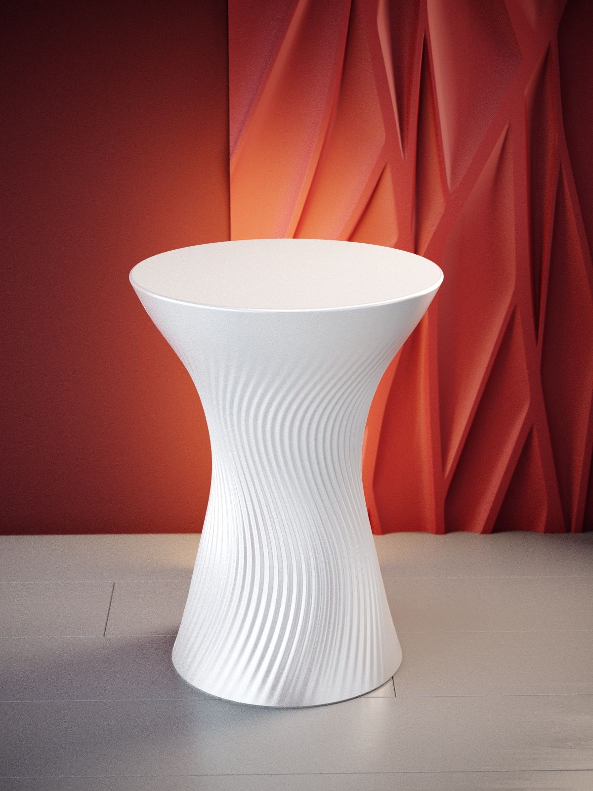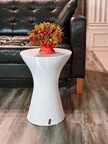 SHT ТАМ-ТАМ — это ритм, воплощённый в форме. Своё название он получил неслучайно: подобно барабану там-там, который создаёт глубокие вибрации и запускает звуковые волны, столик повторяет этот эффект визуально. Его основание с плавными, волнообразными линиями напоминает о расходящихся звуковых волнах — мягких, но мощных. Форме удаётся передать ощущение движения, будто энергия ритма застыла в материале.