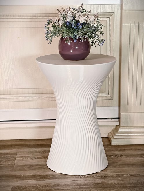 Такой визуальный эффект делает столик выразительным и премиальным, а сама поверхность отличается стойкостью, жёсткостью и стабильностью в эксплуатации.