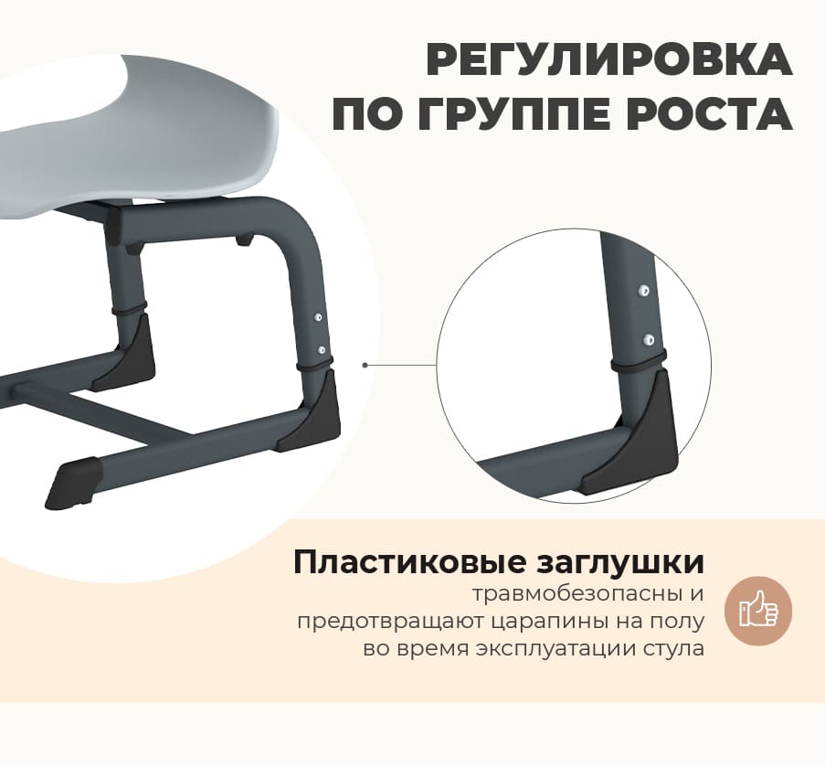 Функция регулировки по высоте обеспечивает комфортное положение и поможет в выработке правильной осанки. Регулируются по высоте на 3-5 группы роста. В каждую упаковку стула вложены наклейки с номерами ростовых групп — вы можете использовать их для удобной маркировки.