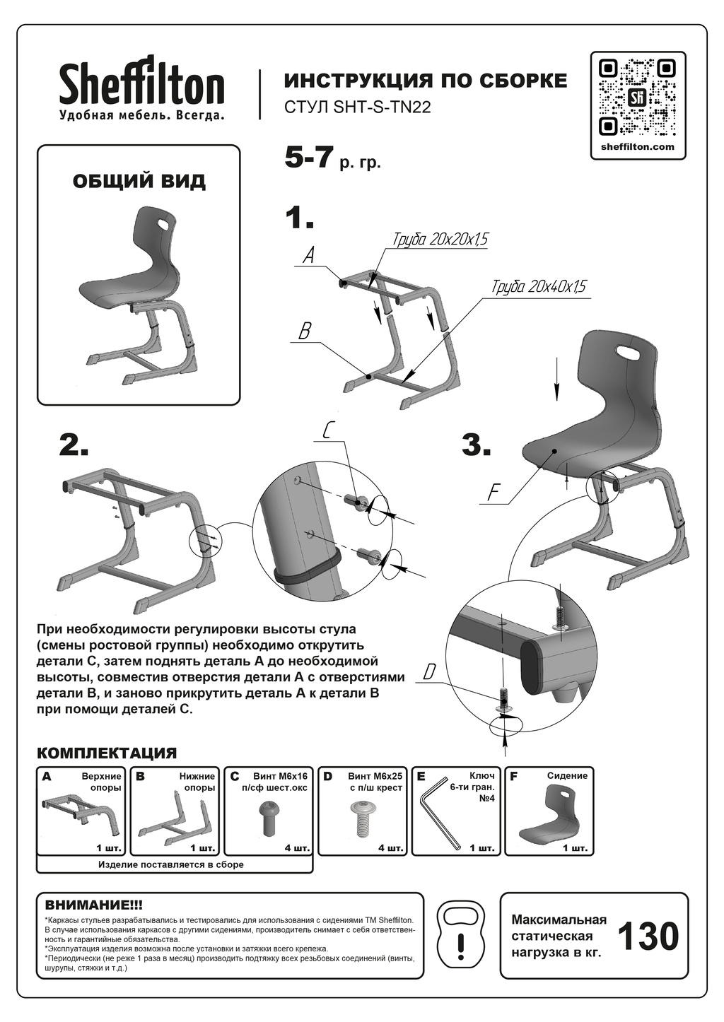 Нагрузка на стул – до 130 кг.