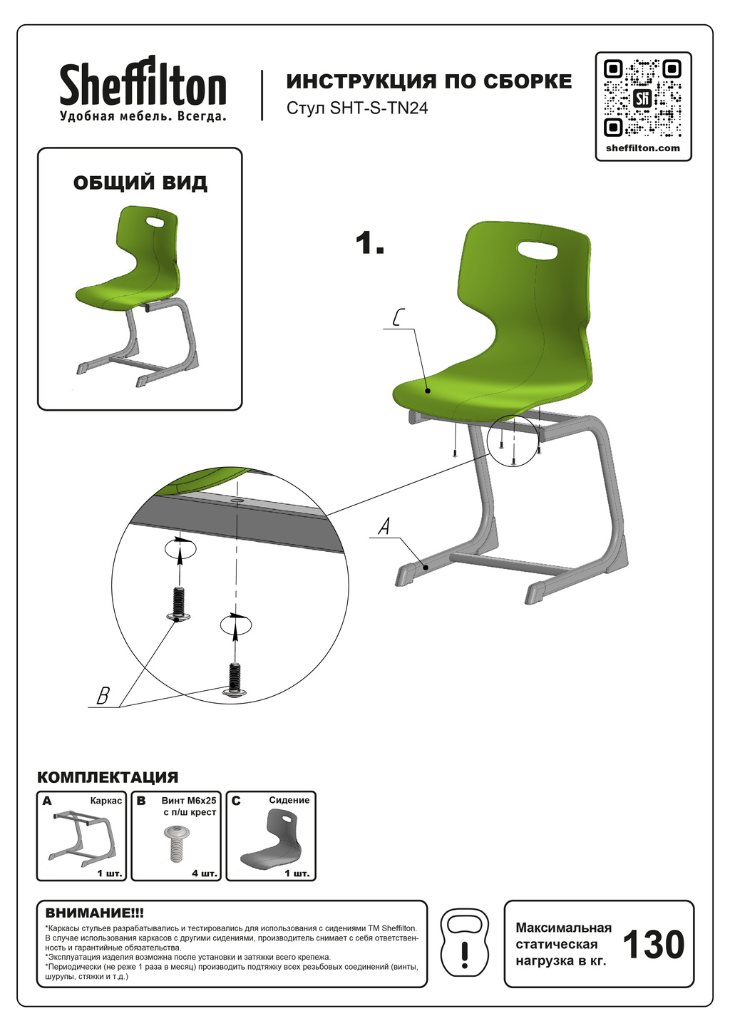 Нагрузка на стул – до 130 кг.