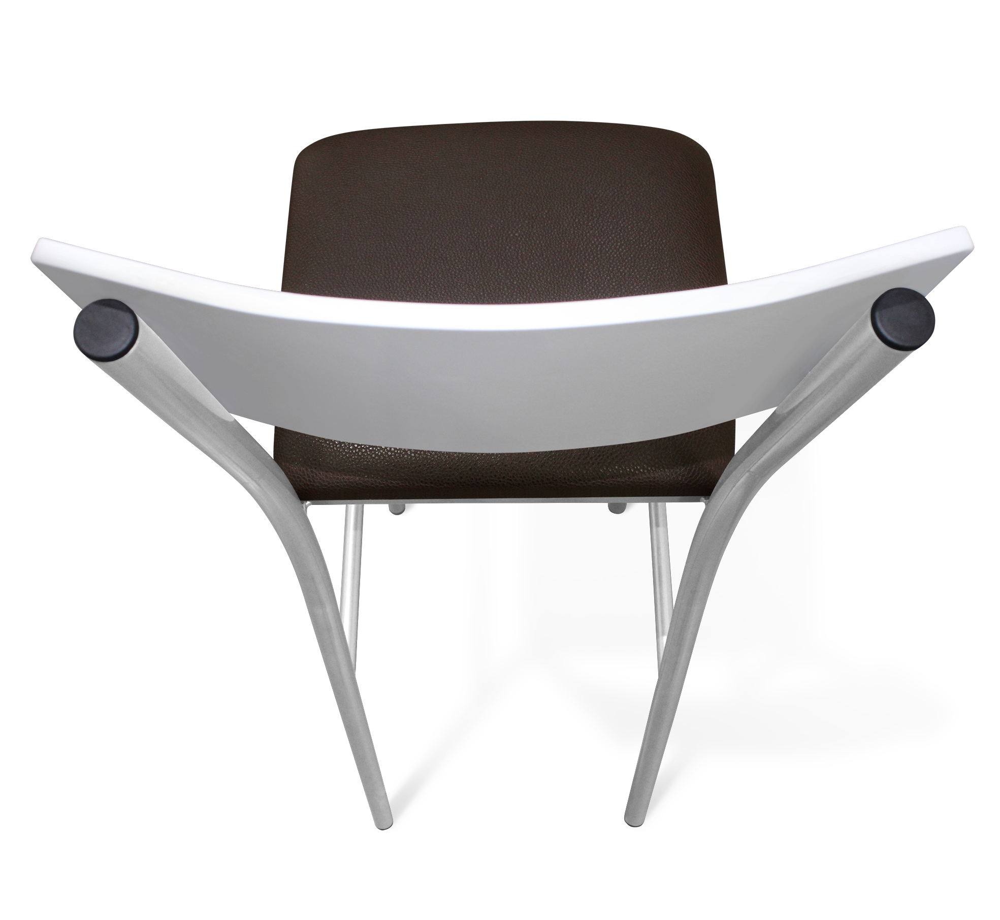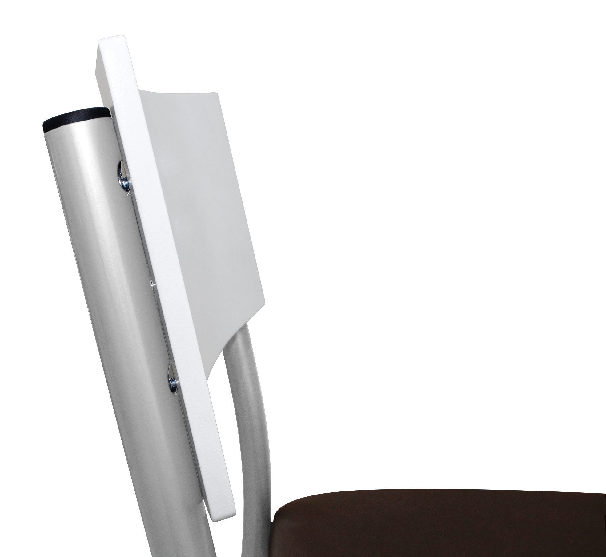 - Спинка стула выполнена из алюминиевого сплава толщиной 10 мм. и установлена на скрытый крепеж. Окрашена порошковой краской белого цвета;