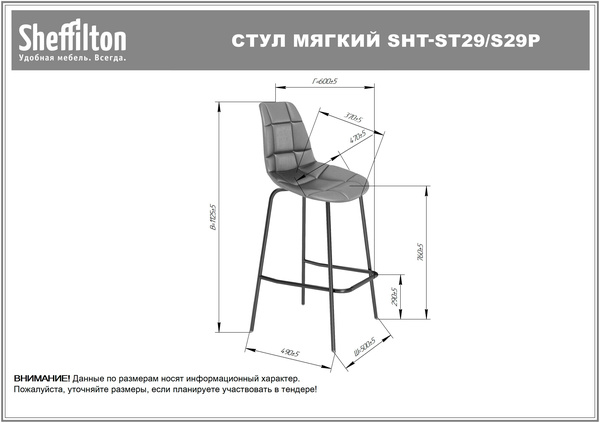 Характеристики индивидуальной упаковки Каркас барного стула SHT-S29P