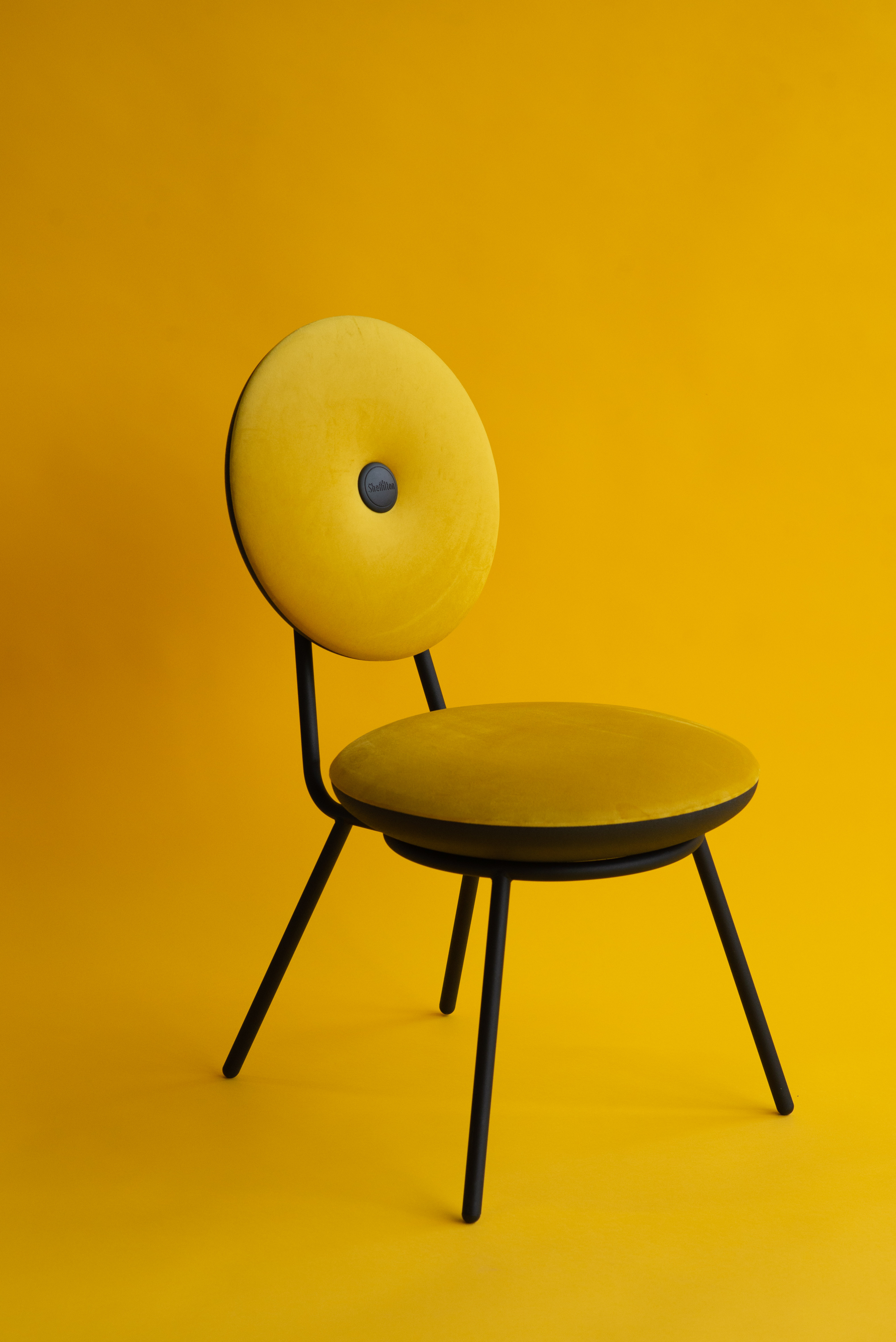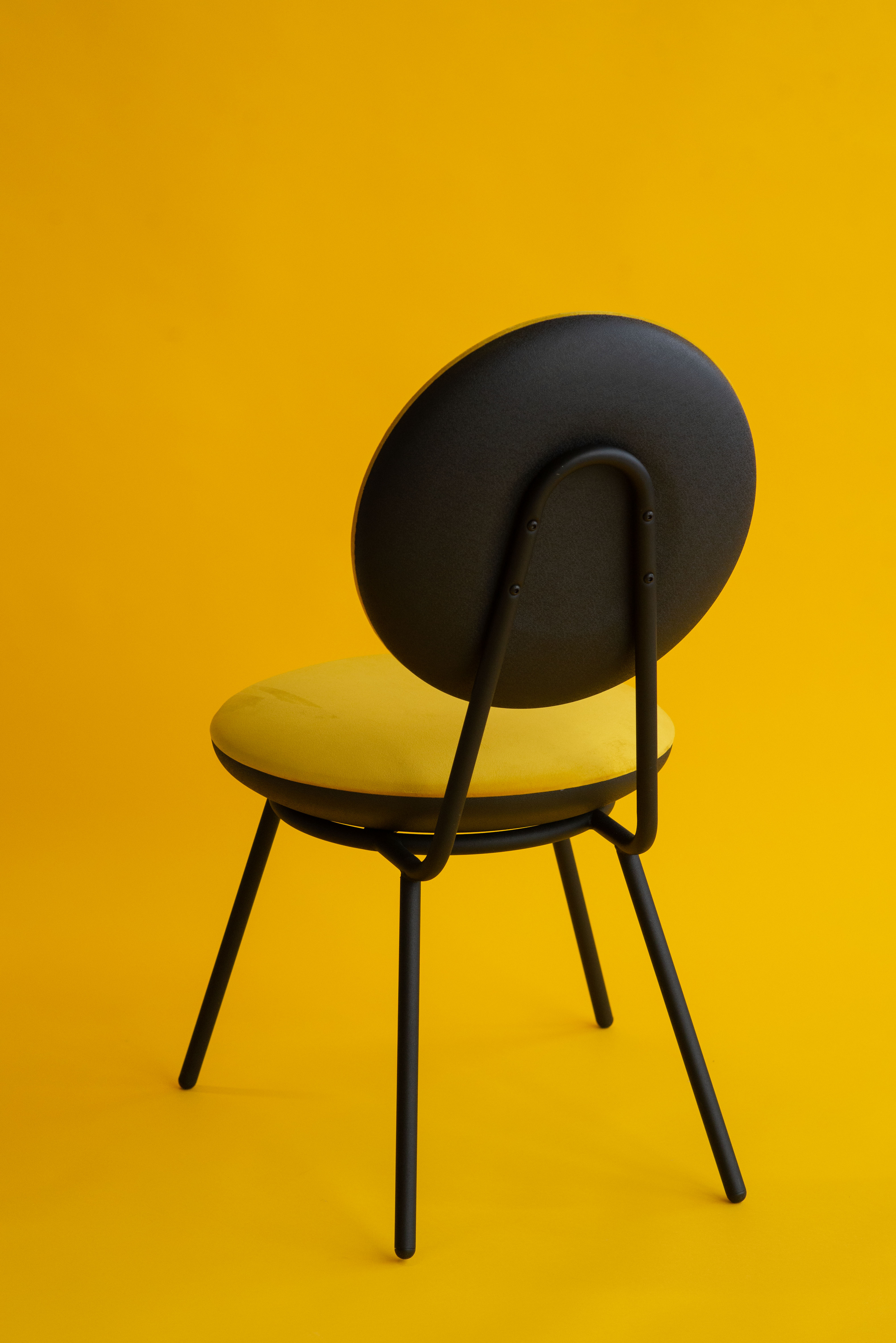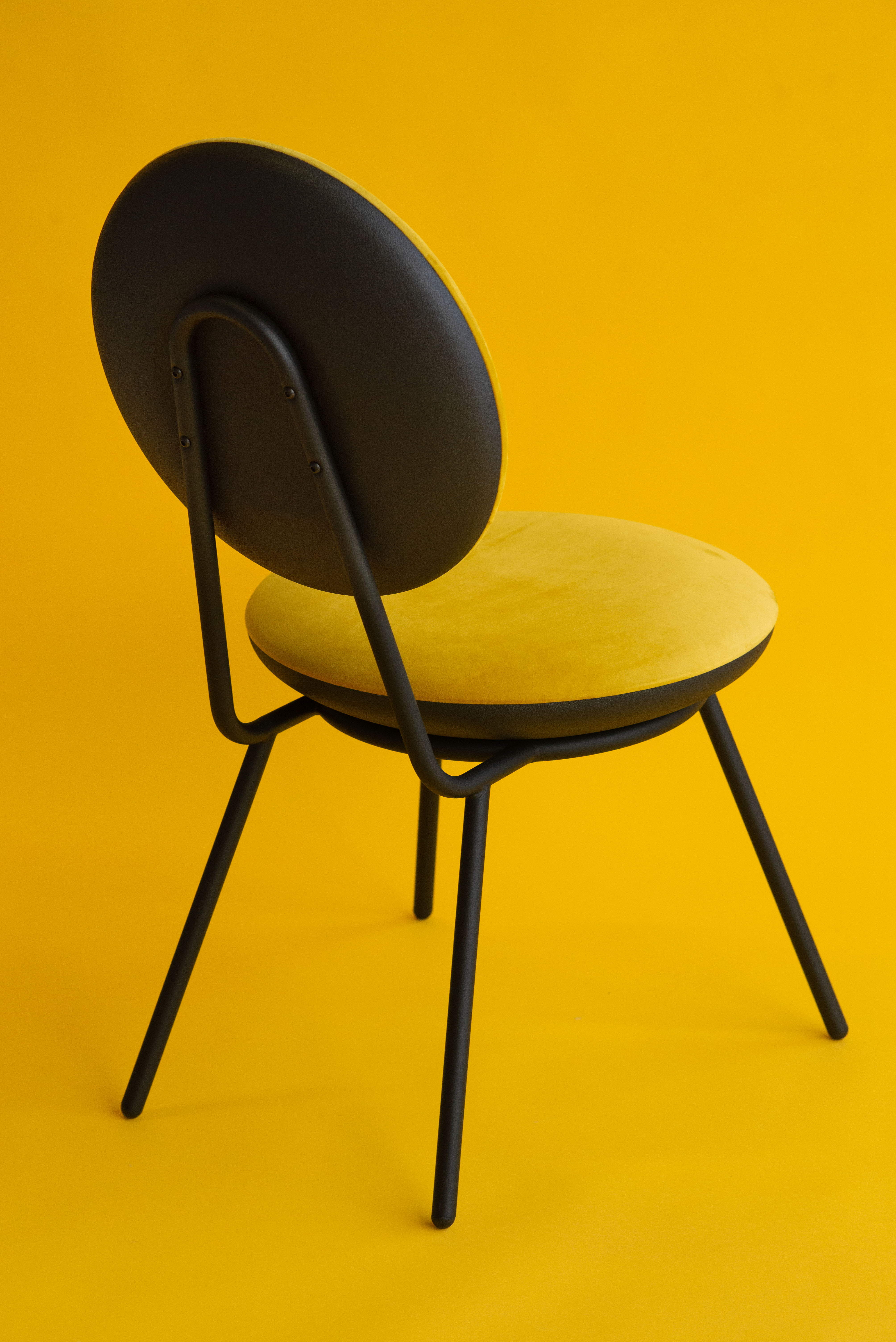 Мягкие объемные элементы на металлическом каркасе создают ощущение легкости и современности. Яркое цветовое исполнение делает модель выразительной, а минималистичная форма позволяет легко вписать стул в офисы, кафе, коворкинги, арт-пространства, лаунж-зоны и современные домашние интерьеры.