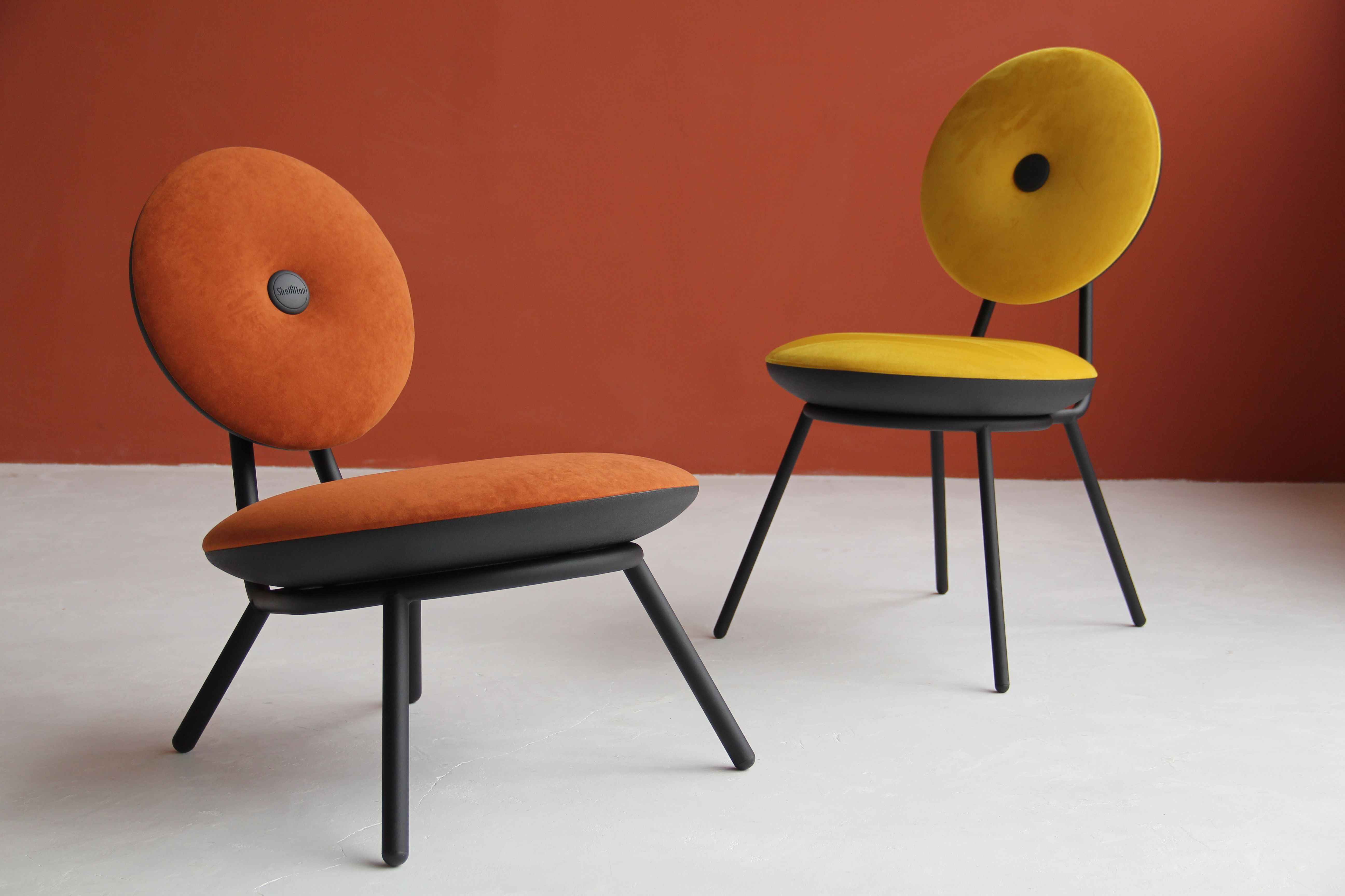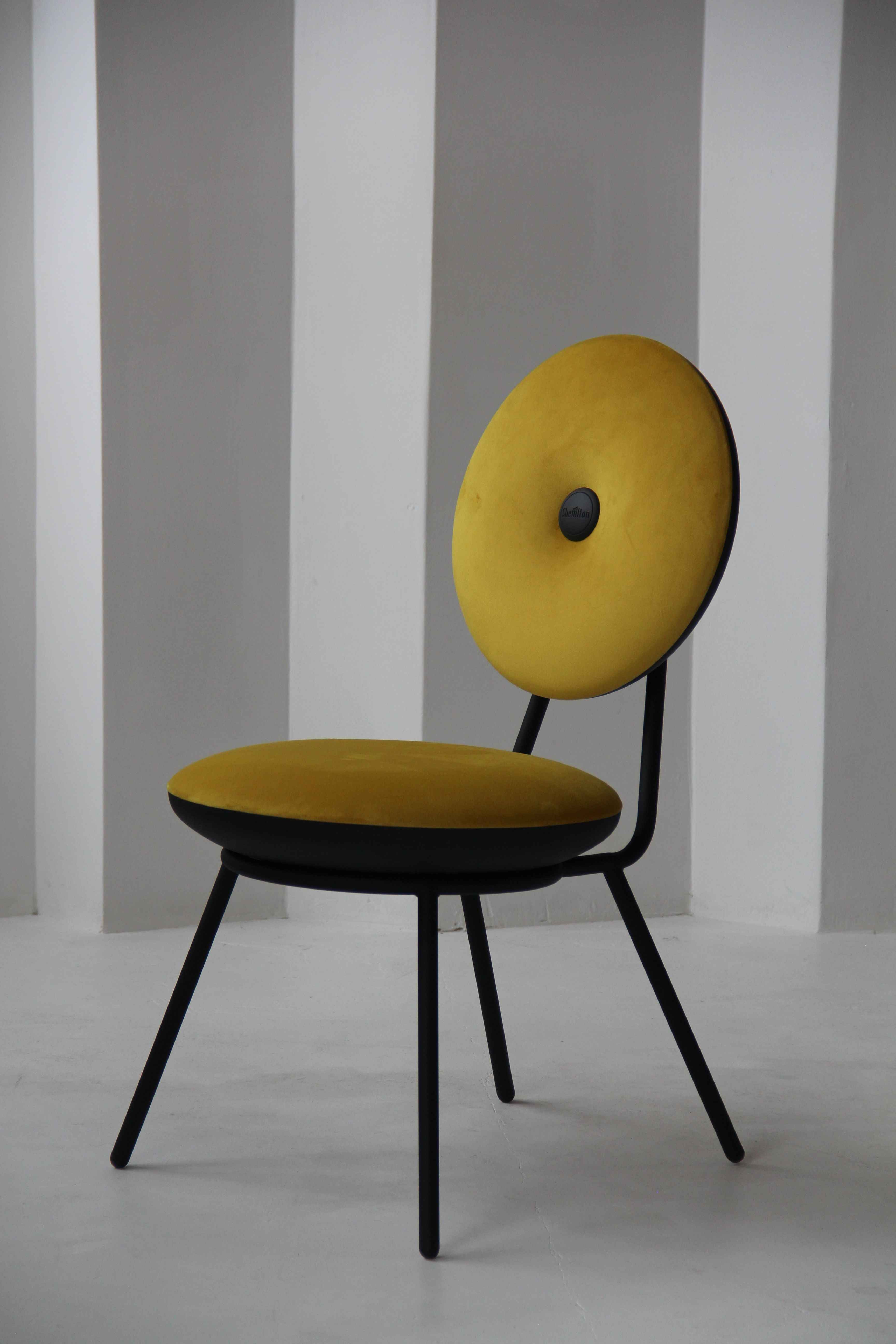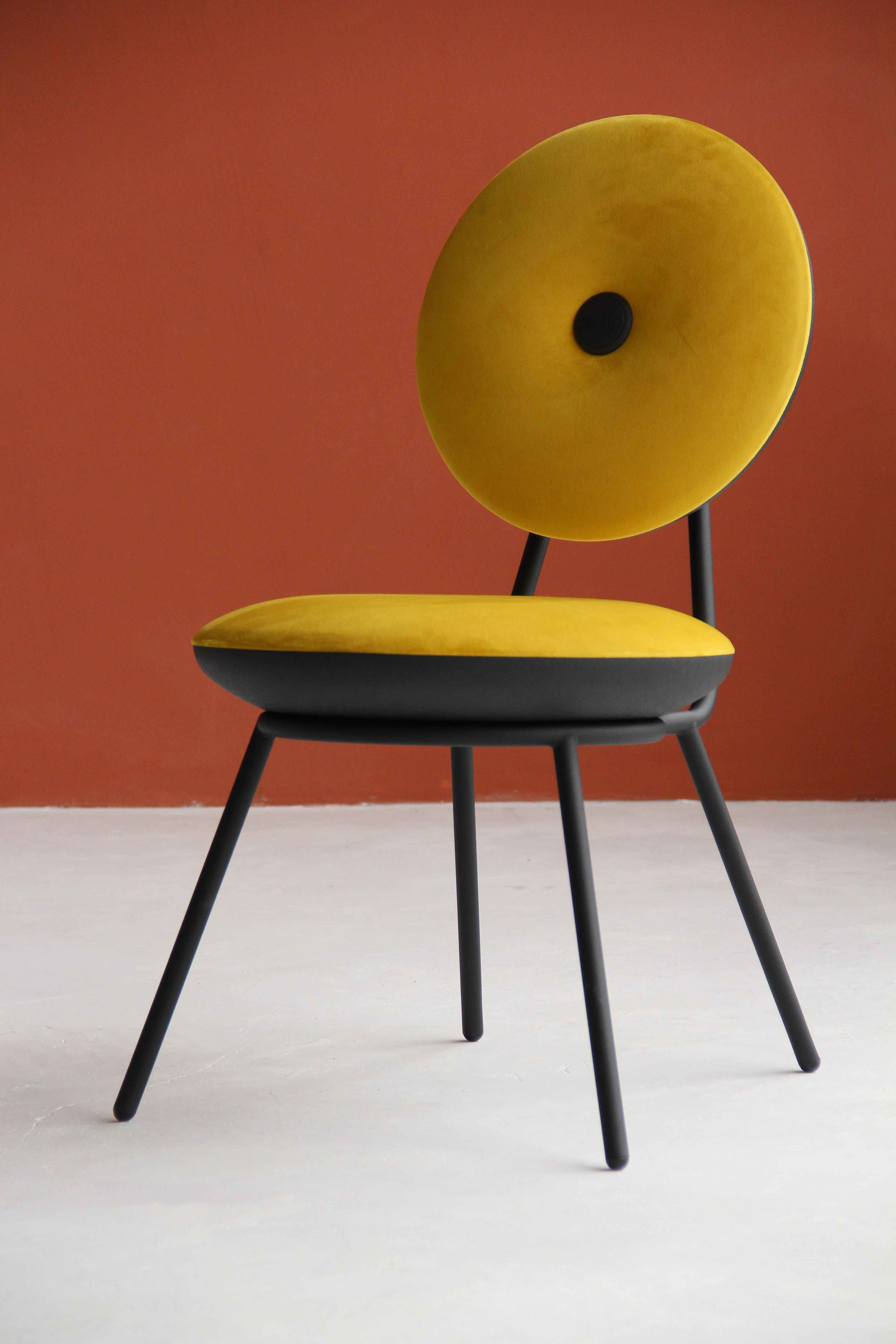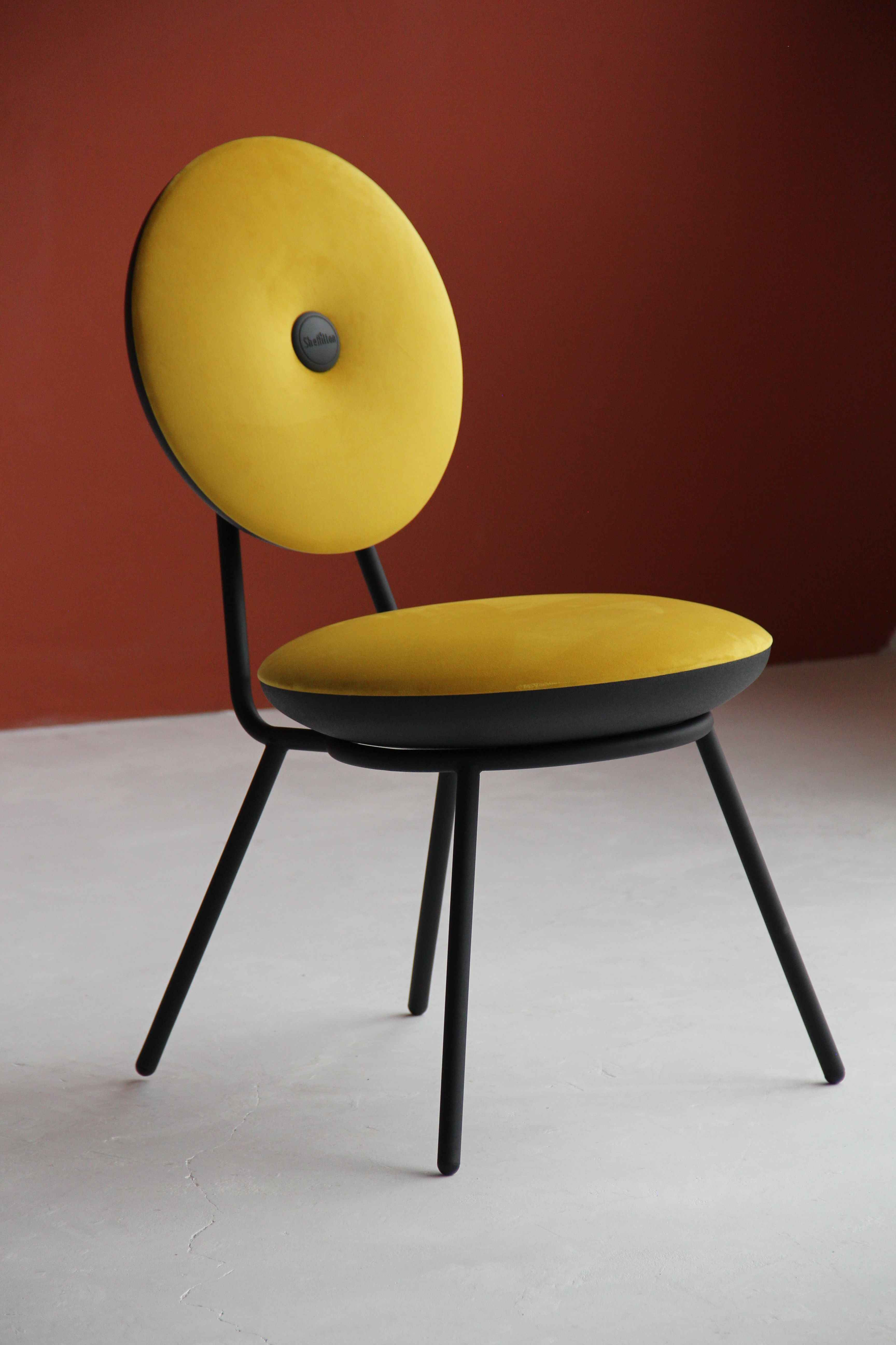 Мягкие объемные элементы на металлическом каркасе создают ощущение легкости и современности. Яркое цветовое исполнение делает модель выразительной, а минималистичная форма позволяет легко вписать стул в офисы, кафе, коворкинги, арт-пространства, лаунж-зоны и современные домашние интерьеры.