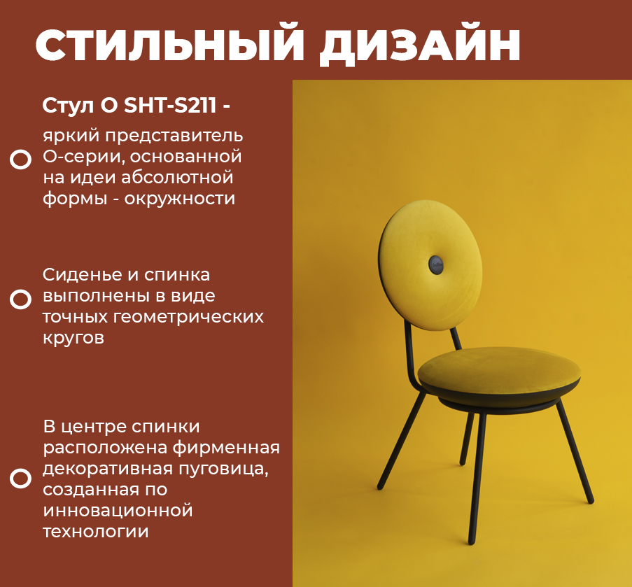 Стул O SHT-S211 — яркий представитель O-серии, основанной на идее абсолютной формы — окружности. И сиденье, и спинка выполнены в виде точных геометрических кругов, что делает силуэт стула узнаваемым и свежим.