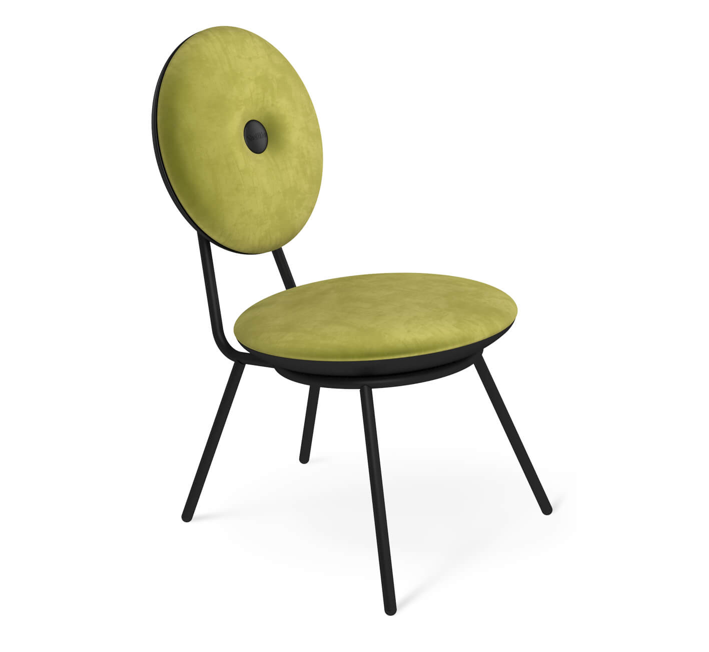 Круглая форма сиденья и мягкая обивка из микровелюра обеспечивают комфортную посадку. Эргономичный наклон спинки поддерживает тело в естественном положении, а округлые контуры создают ощущение расслабленности.