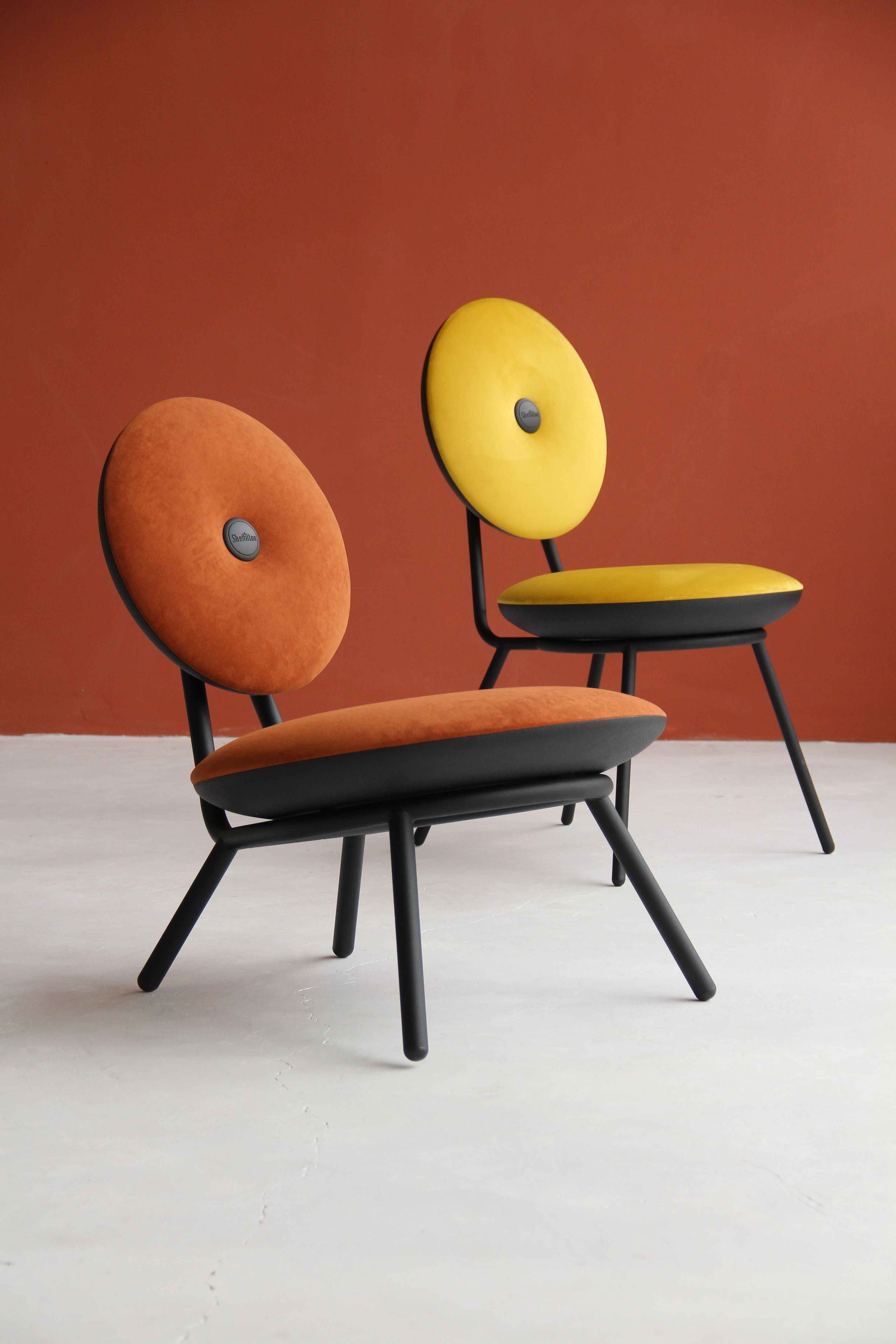 Мягкие объемные элементы на металлическом каркасе создают ощущение легкости и современности. Яркое цветовое исполнение делает модель выразительной, а минималистичная форма позволяет легко вписать стул в офисы, кафе, коворкинги, арт-пространства, лаунж-зоны и современные домашние интерьеры.