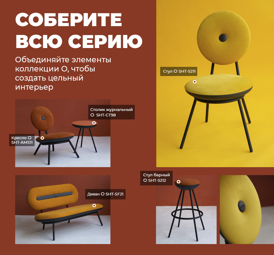 Стул O SHT-S211 — яркий представитель O-серии, основанной на идее абсолютной формы — окружности. И сиденье, и спинка выполнены в виде точных геометрических кругов, что делает силуэт стула узнаваемым и свежим.