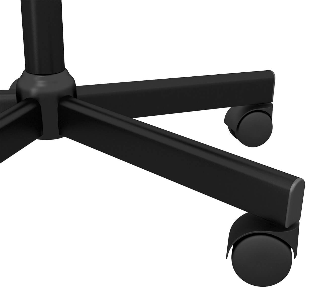 Широкая площадь опоры и пять лучей делают каркас устойчивым и надежным. Каркас выполнен из металла. Покрыт порошковой краской, устойчивой к механическим повреждениям. Колеса выполнены из полипропилена.