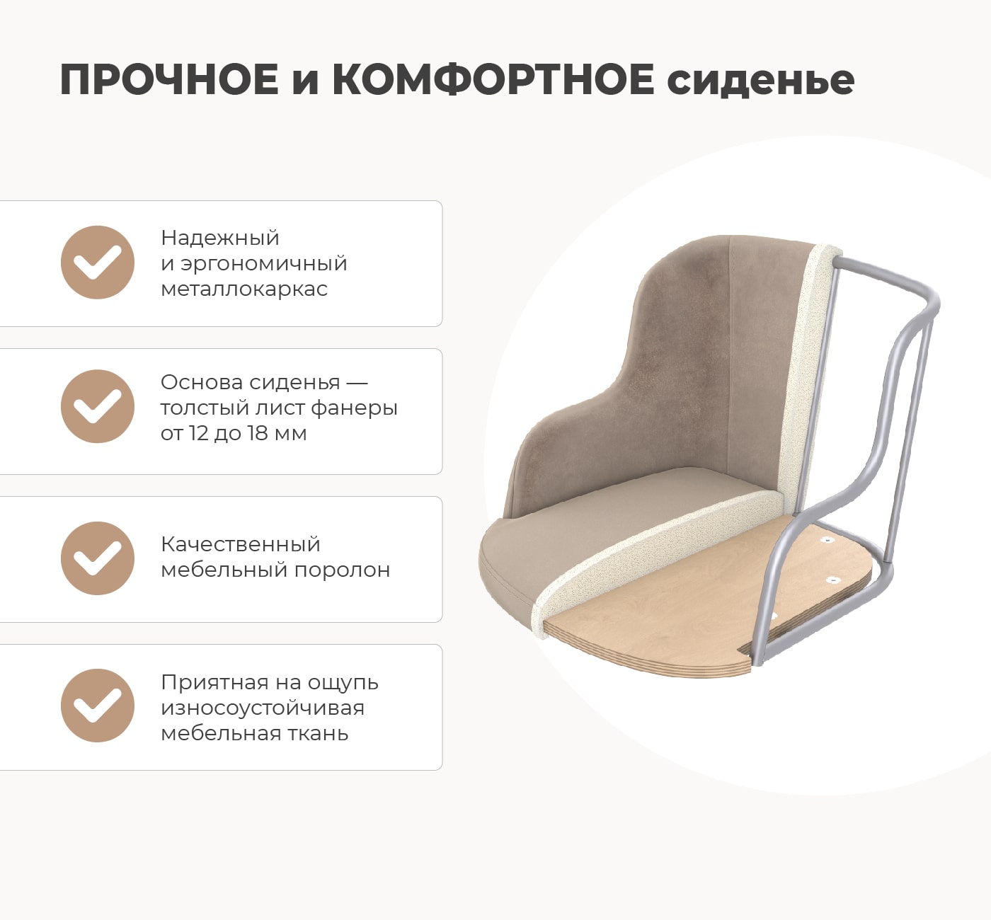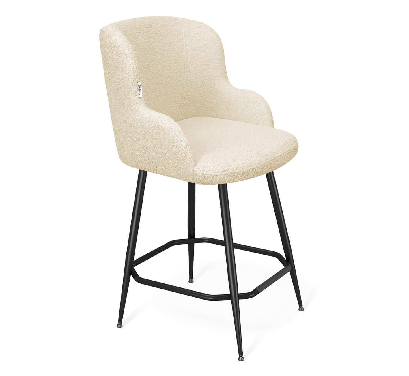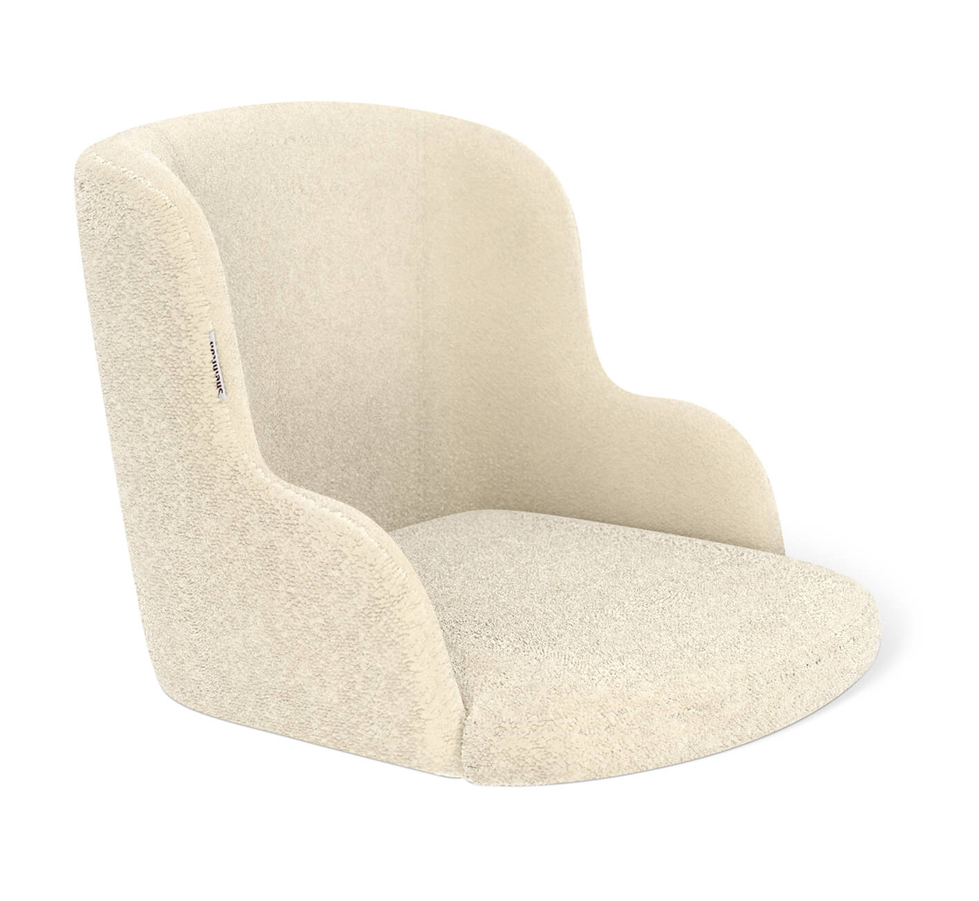 Волнообразные подлокотники придают сидению классический вид. Благодаря модному цвету букле – готовый стул способен преобразить обстановку и добавить стиля! Сидение отлично смотрится при любом варианте освещения: и естественном, и искусственном.