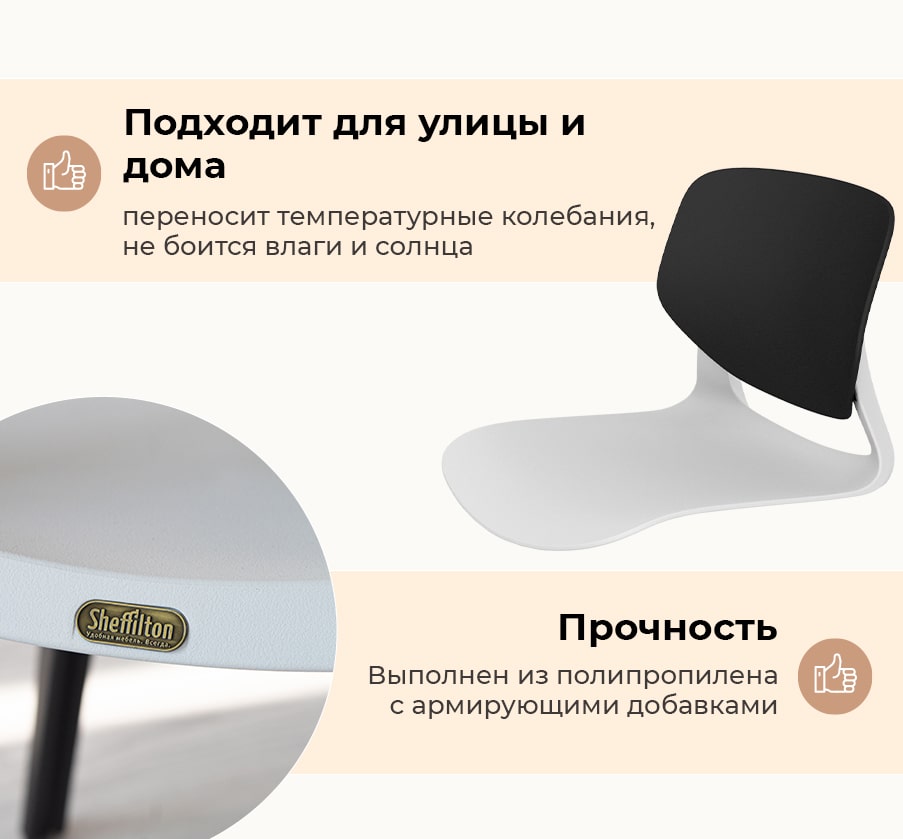 Сиденье выполнено из полипропилена с армирующими добавками, благодаря которым повышается жесткость и надежность. Изделие устойчиво к ударным воздействиям, а также негативным воздействиям окружающей среды и появлению царапин.