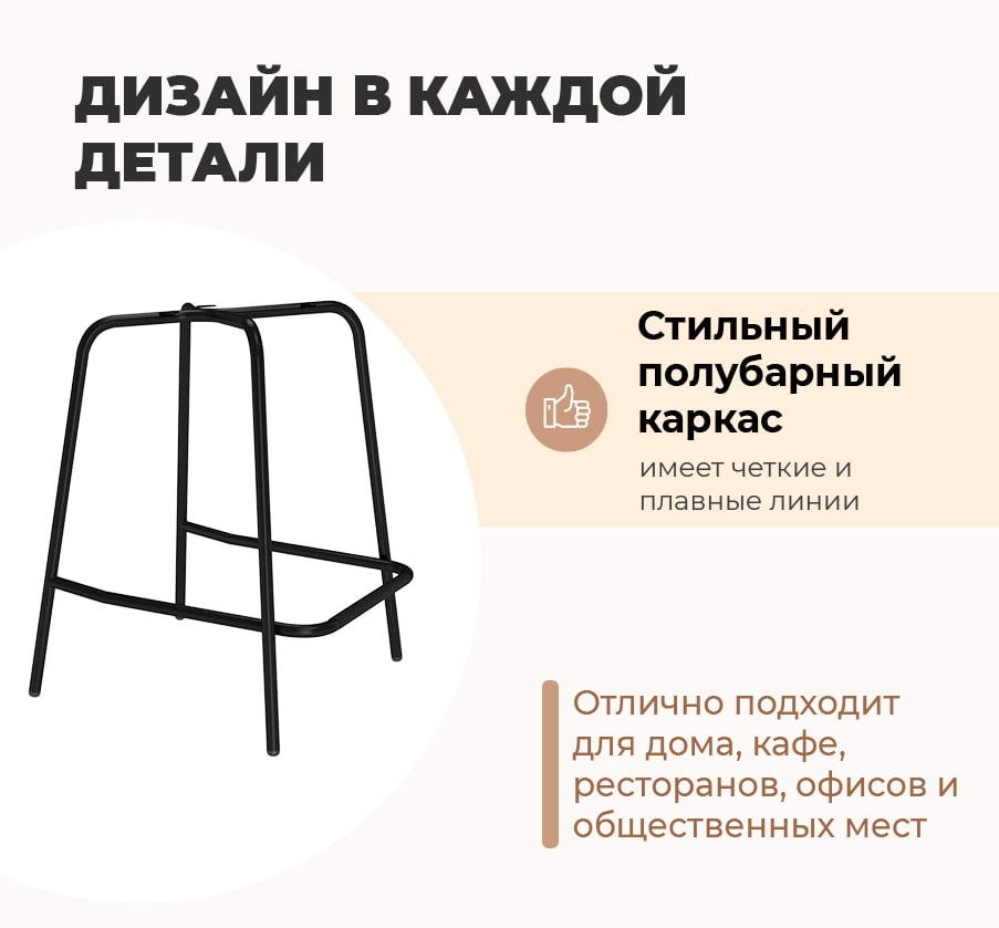 Стул состоит из сидения и каркаса. Под полубарный каркас SHT-S196-1 Вы можете выбрать любой цвет сиденья SHT-ST59 в нашем конструкторе.