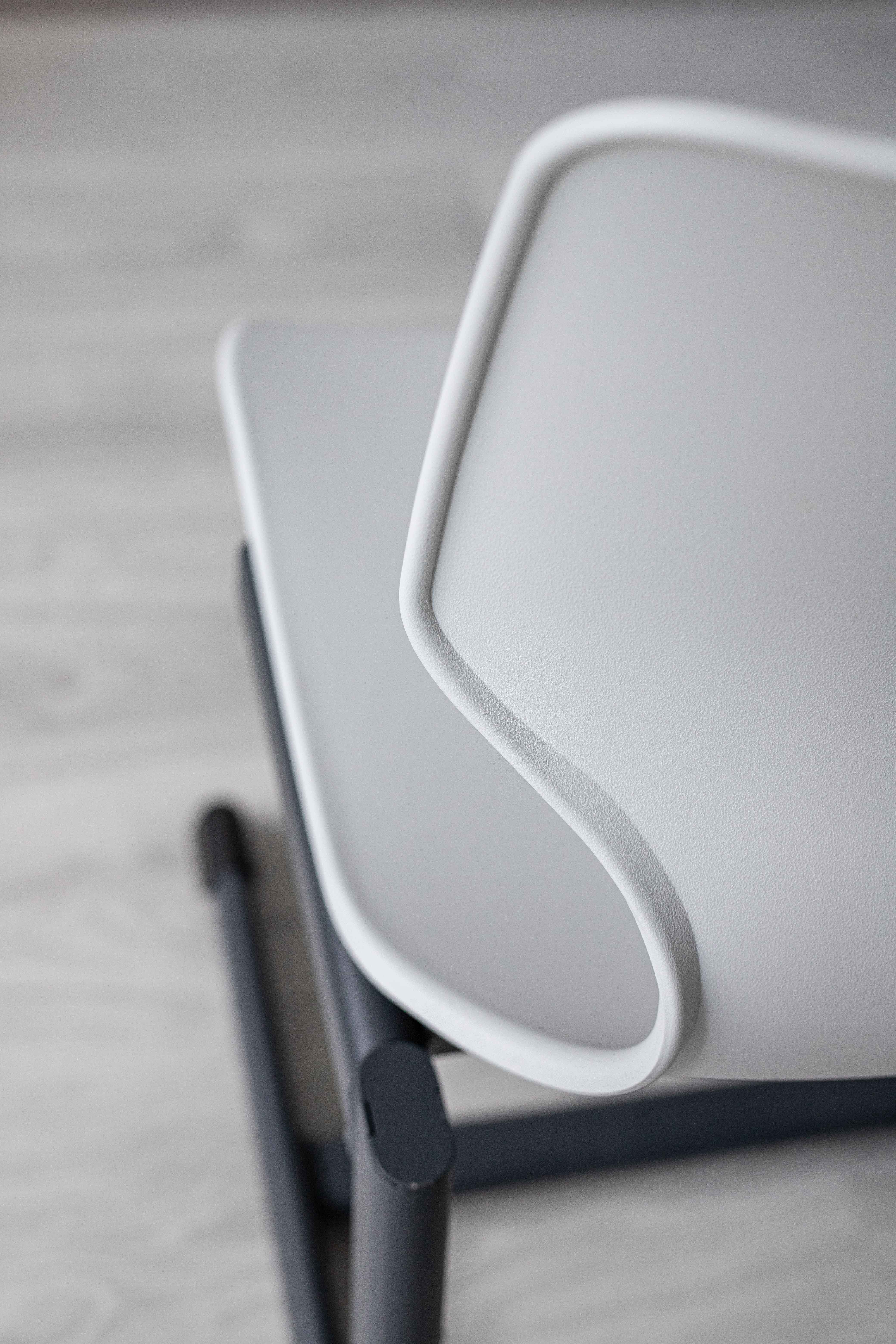 Сиденье выполнено из утолщенного пластика с армирующими добавками, что значительно увеличивает его жесткость и надежность. Надежный металлический каркас стула выполнен из плоскоовальной трубы и покрыт порошковой краской, устойчивой к механическому воздействию. Каждый стул проходит строгие испытания на устойчивость, выдерживая более 50 000 циклов нагружения "сел-встал", что гарантирует его долговечность даже при интенсивном использовании.
