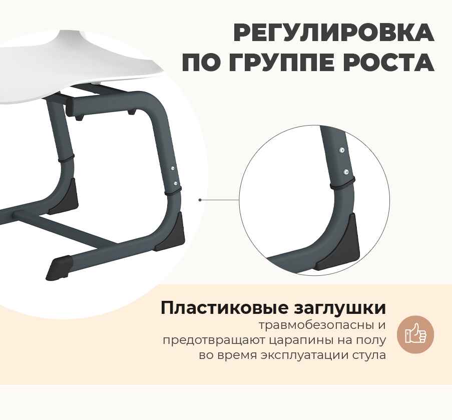 Функция регулировки по высоте обеспечивает комфортное положение и поможет в выработке правильной осанки. Регулируются по высоте на 5-7 группы роста. В каждую упаковку стула вложены наклейки с номерами ростовых групп — вы можете использовать их для удобной маркировки.