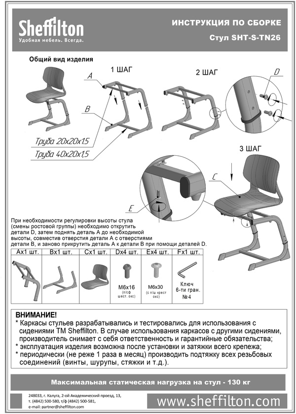 Высота изделия /регулируемая/: 790-830-870 мм (с фиксацией на ростовые группы).