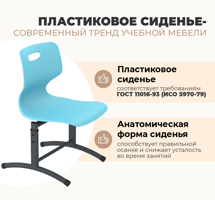 АНАТОМИЧЕСКАЯ ФОРМА СИДЕНЬЯ способствует правильной осанке и снижает усталость во время занятий. На спинке предусмотрено отверстие для руки, что делает перемещение стула простым и удобным.