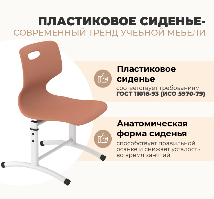 АНАТОМИЧЕСКАЯ ФОРМА СИДЕНЬЯ способствует правильной осанке и снижает усталость во время занятий. На спинке предусмотрено отверстие для руки, что делает перемещение стула простым и удобным.
