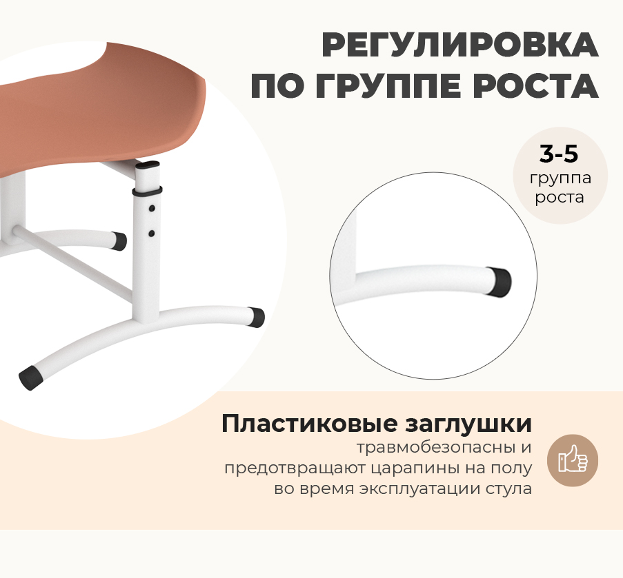 Функция регулировки по высоте обеспечивает комфортное положение и поможет в выработке правильной осанки. Регулируются по высоте на 3-5 группы роста. В каждую упаковку стула вложены наклейки с номерами ростовых групп — вы можете использовать их для удобной маркировки.