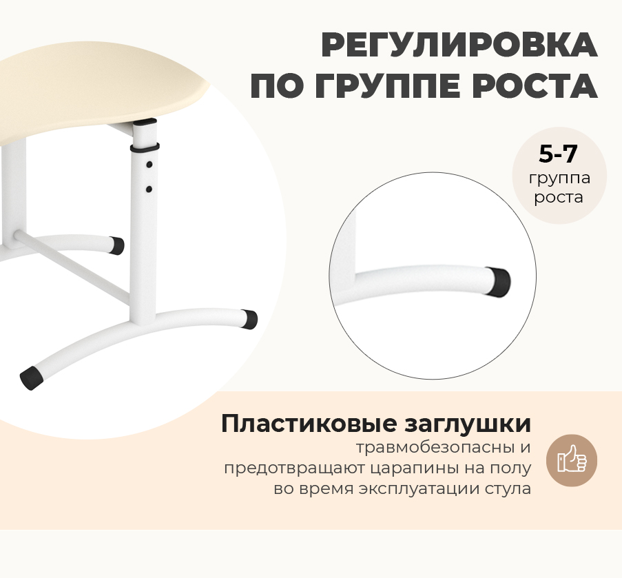 Функция регулировки по высоте обеспечивает комфортное положение и поможет в выработке правильной осанки. Регулируются по высоте на 5-7 группы роста. В каждую упаковку стула вложены наклейки с номерами ростовых групп — вы можете использовать их для удобной маркировки.